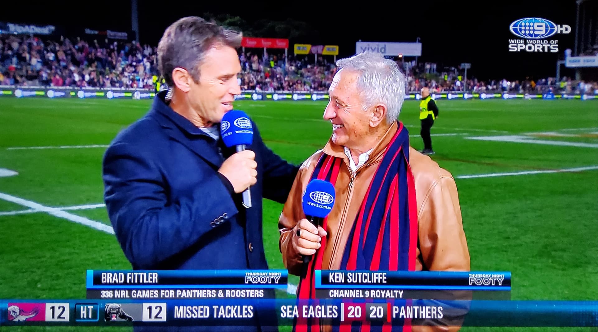 Former Wide World of Sports host, Ken Sutcliffe, made a special appearance tonight - during the half time break. It was a very brief chat with Brad Fittler.