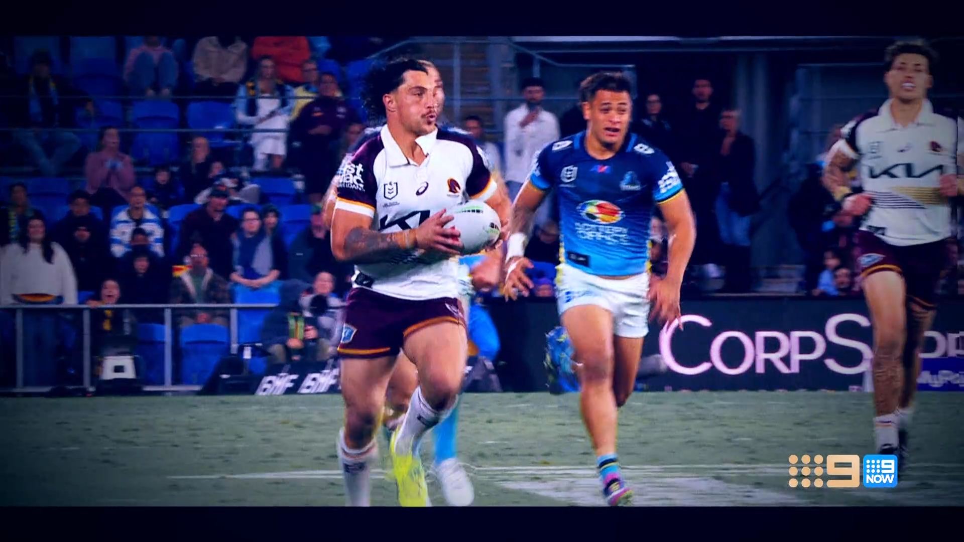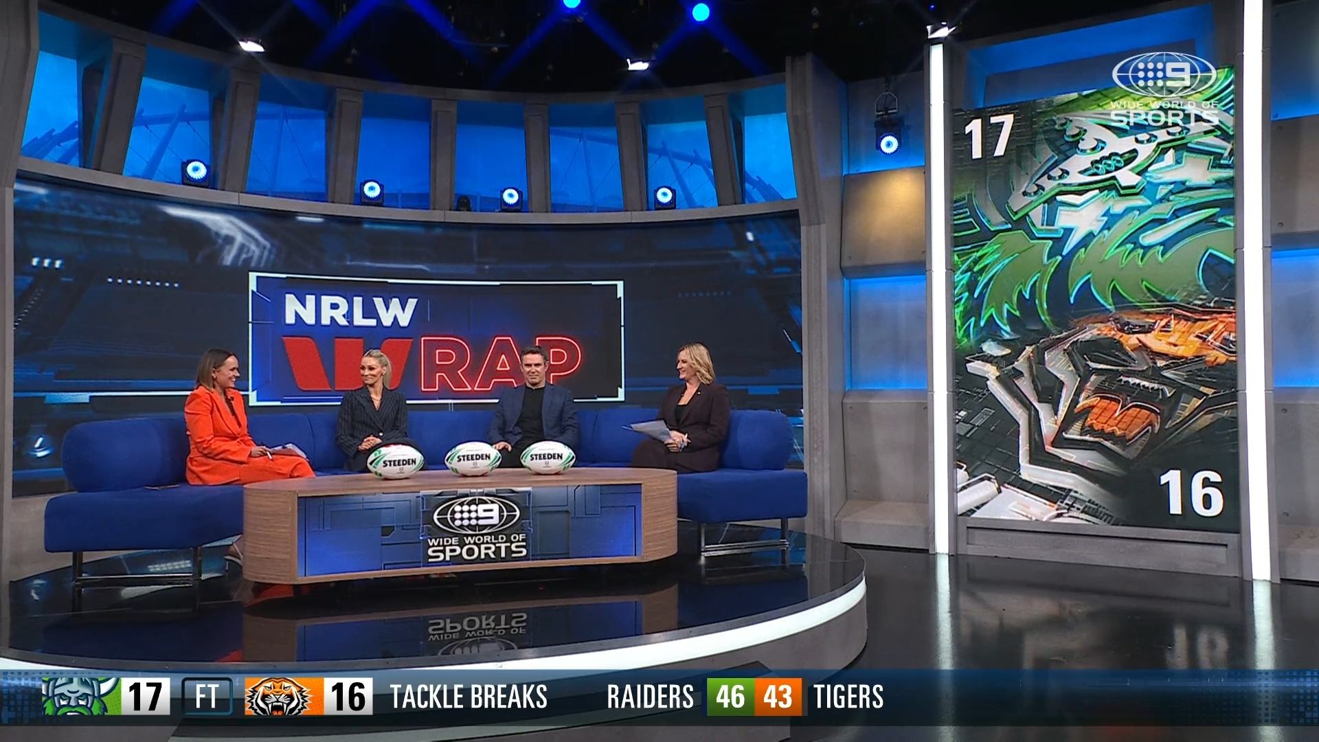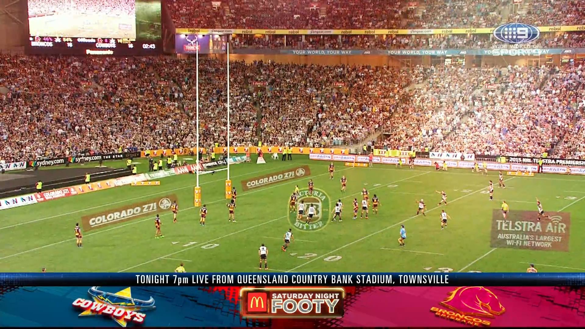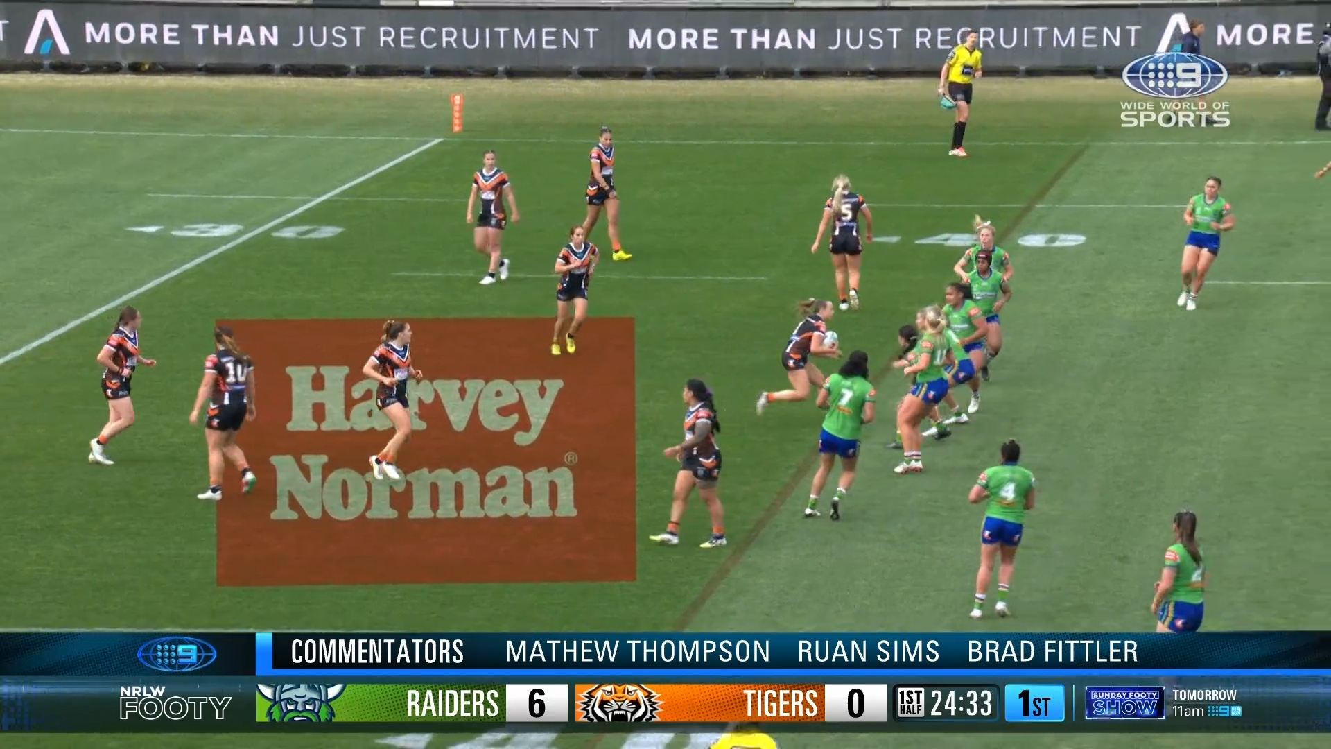 Discovered that there is an NRLW game on beforehand, so SA goes straight from that to join the main channel coverage at 7.30 Eastern (as its all on 9Gem here).