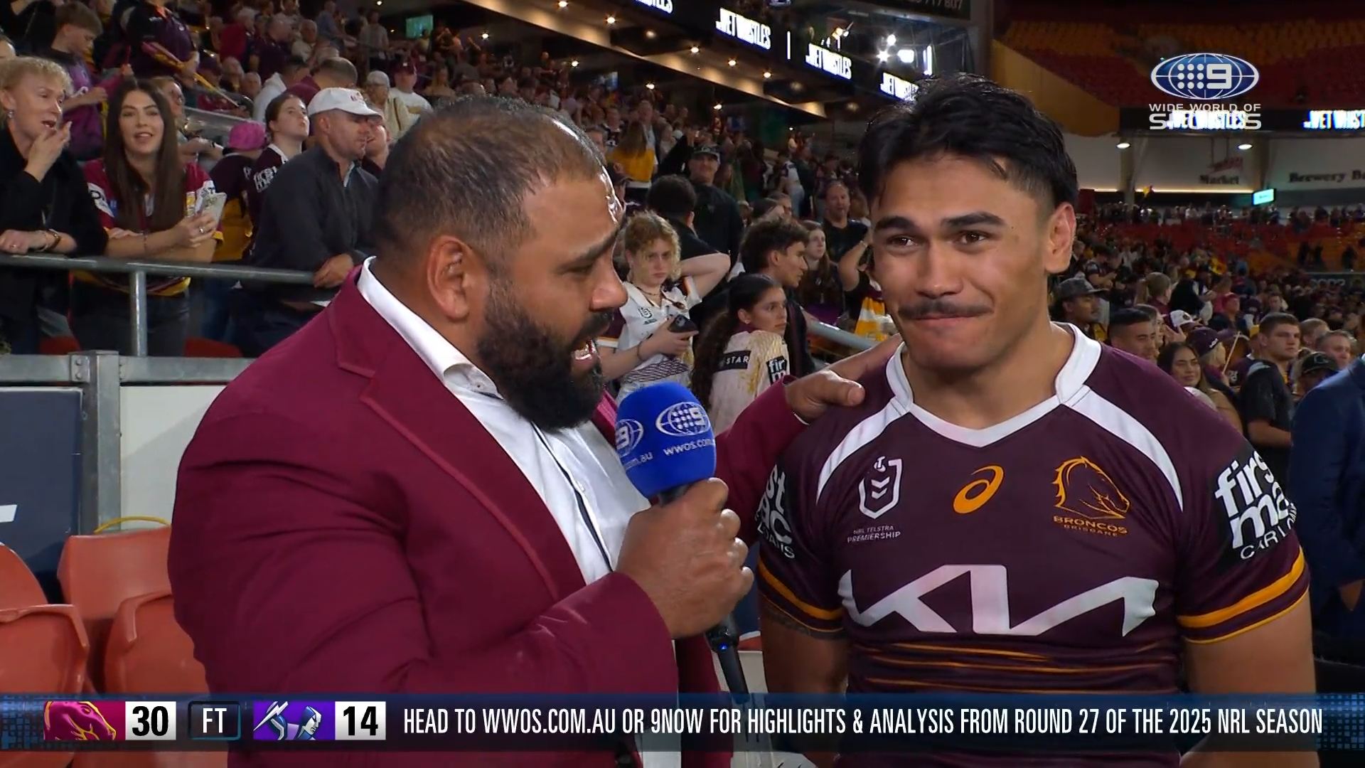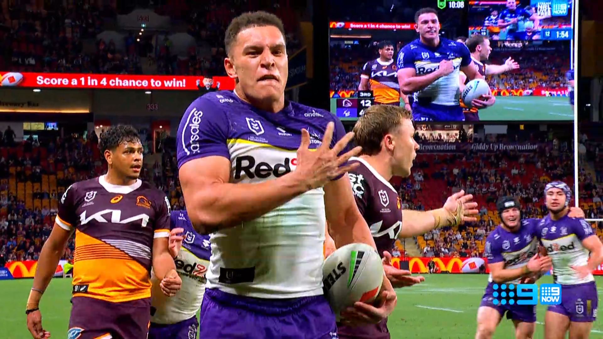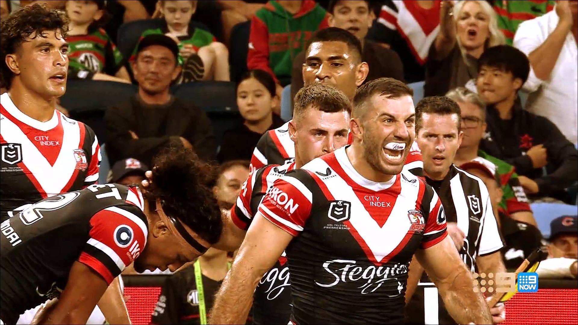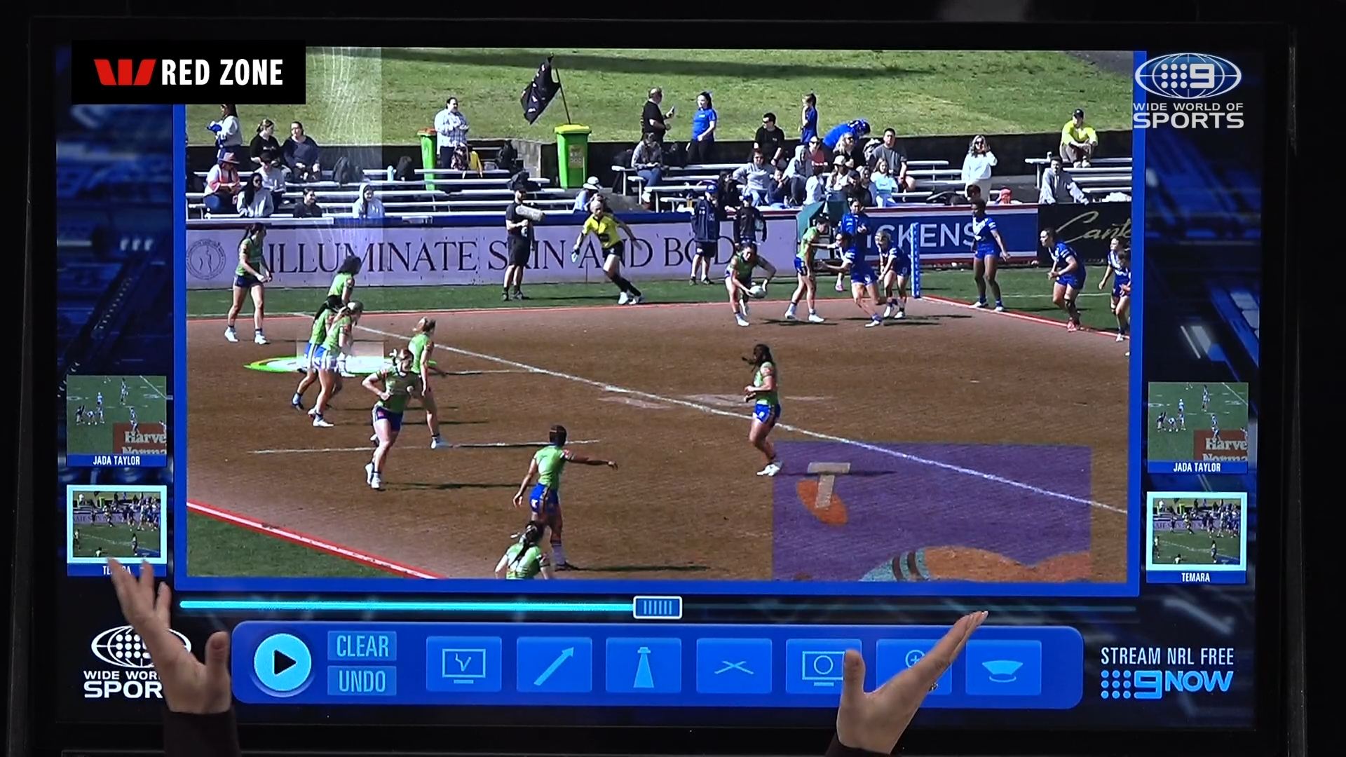 Discovered that there is an NRLW game on beforehand, so SA goes straight from that to join the main channel coverage at 7.30 Eastern (as its all on 9Gem here).