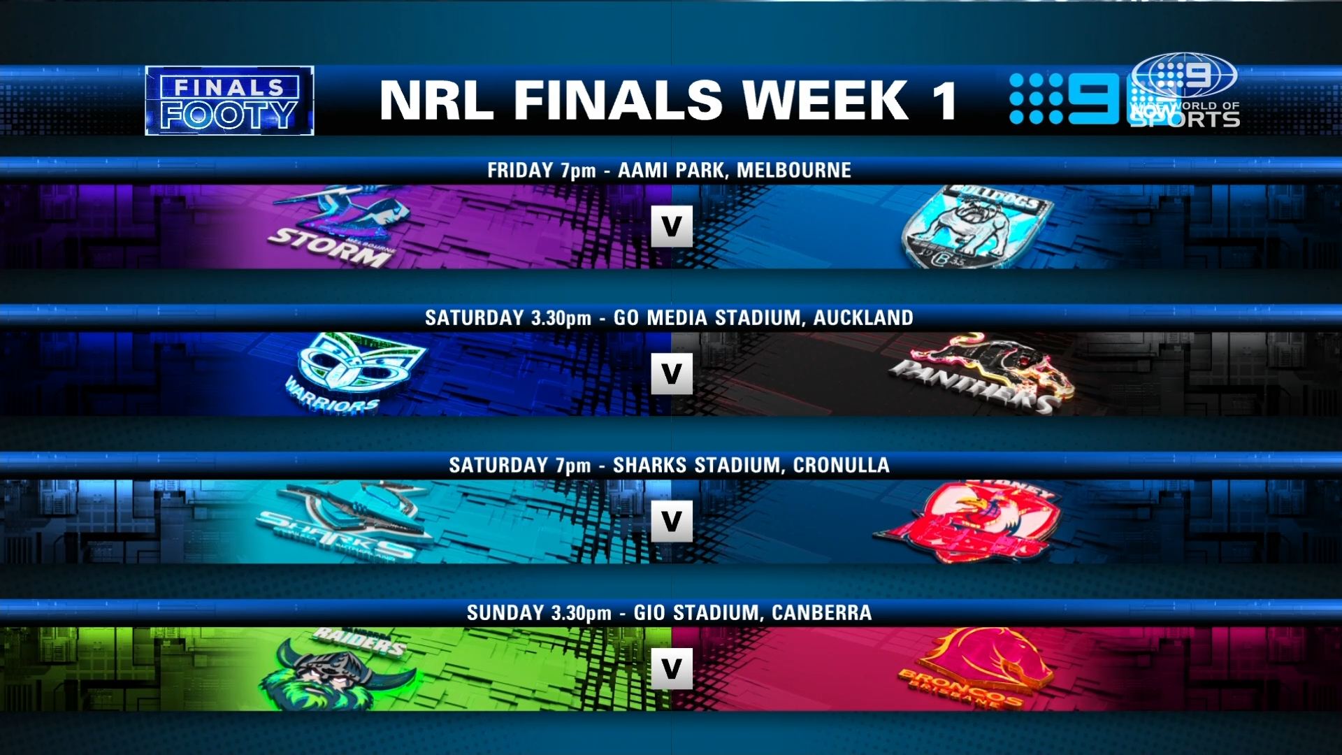 No Thursday night game for Week 1 of the Finals is a bit strange when Nine has the timeslot all season.