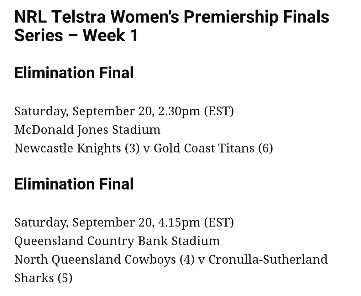 The NRL not only confirmed the men’s preliminary finals fixture last night, but also revealed that Suncorp Stadium would host a doubleheader on the Sunday, with the Broncos to host the Knights or the Titans in the NRLW preliminary final in early afternoon.