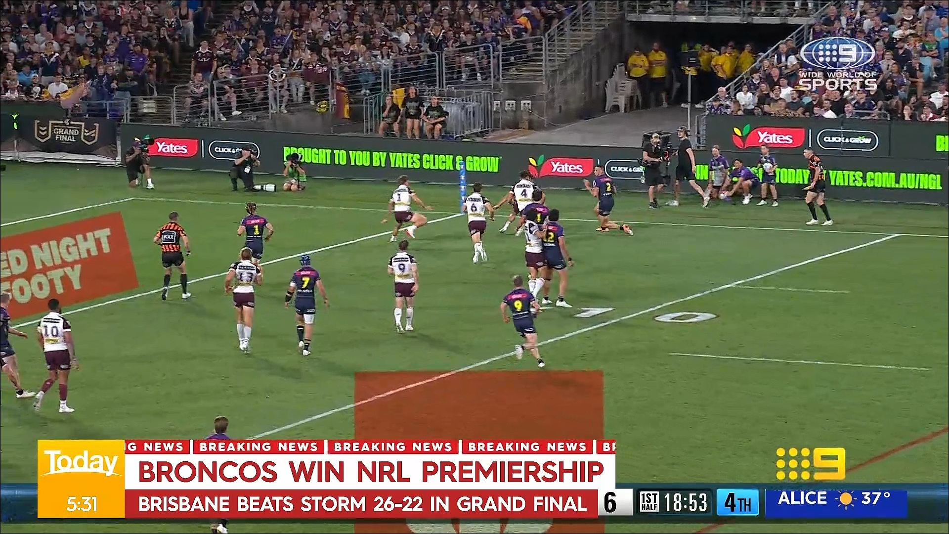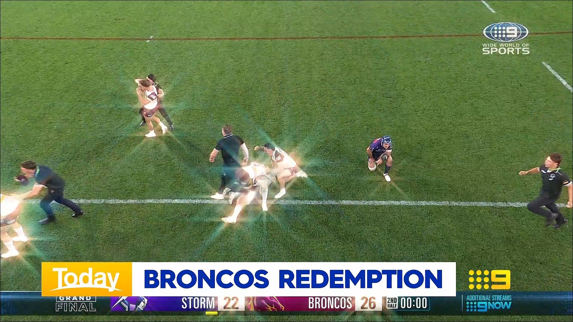 You just know that when Andrew Johns says “amazing defense from the Storm” that Brisbane are about to score!