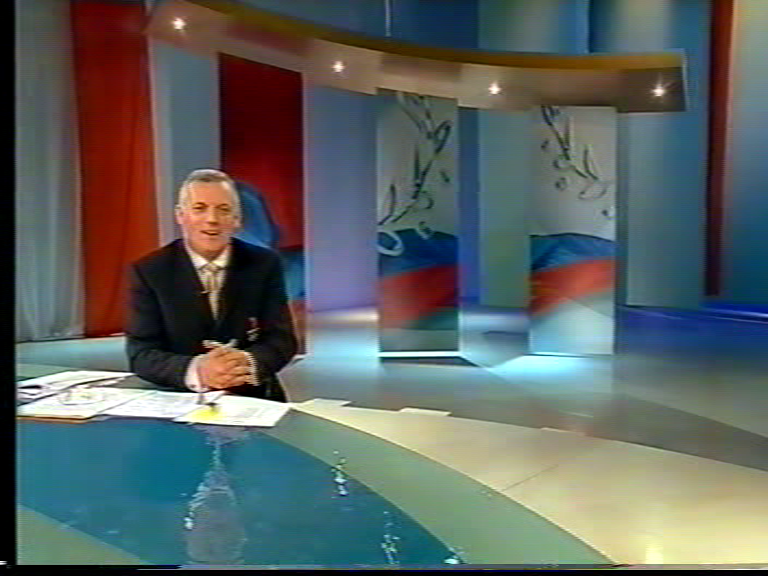 Sandy Roberts presenting from Docklands in Melbourne during the 2004 Olympics
