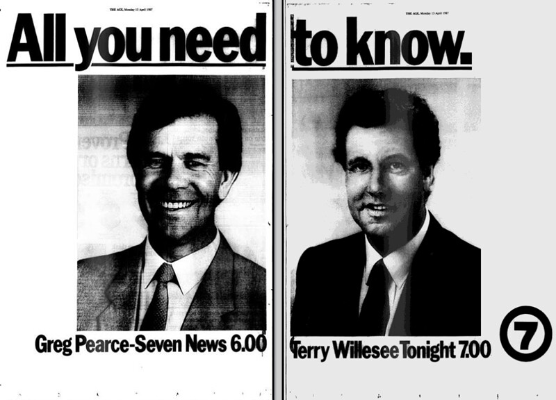 13 April 1987: HSV7 launches its new-look Seven National News, now a one-hour format at the new time of 6.00 and introducing Greg Pearce, replacing Mal Walden. And the Melbourne debut of Terry Willesee Tonight, replacing the local current affairs show Day By Day.