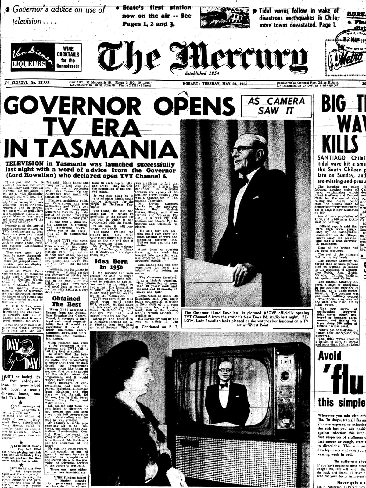 23 May 1960: Tasmania’s first TV station, TVT6, is officially opened by Tasmanian Governor Sir Lord Rowallan