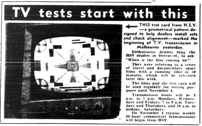 16 July 1956: HSV7 begins its first regular test pattern transmission ahead of its planned official launch in November. It was the first of the Melbourne channels to commence regular test transmission.