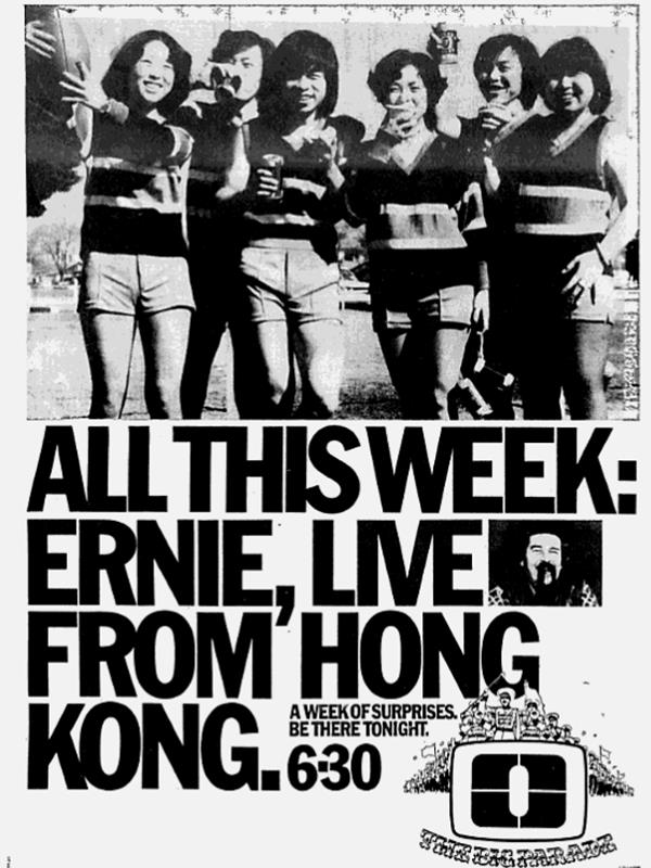 6 September 1976: ATV0’s evening variety show Ernie, hosted by Ernie Sigley, begins a week of shows presented live from Hong Kong.
