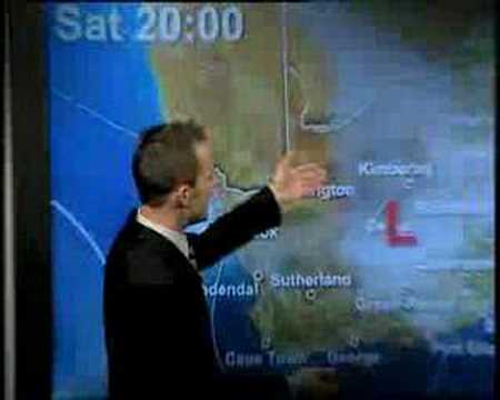 Staying in South Africa but moving to the post-Apartheid era, here are two 2008 promos featuring e.News’s American weathercaster Eric Van Dam and poking fun at his inability to pronounce South African place names: