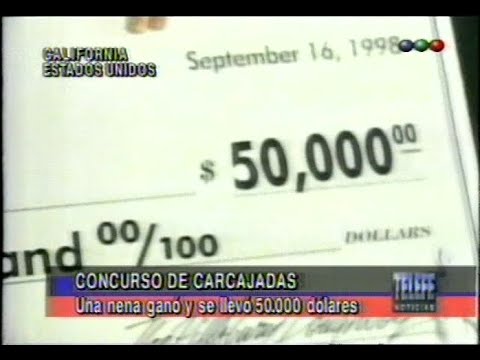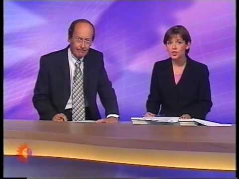 The closing segment of Telefe Noticias’ midday edition in September 1998, with anchors Amalia Rosas and Franco Salomone standing up in front of the desk.