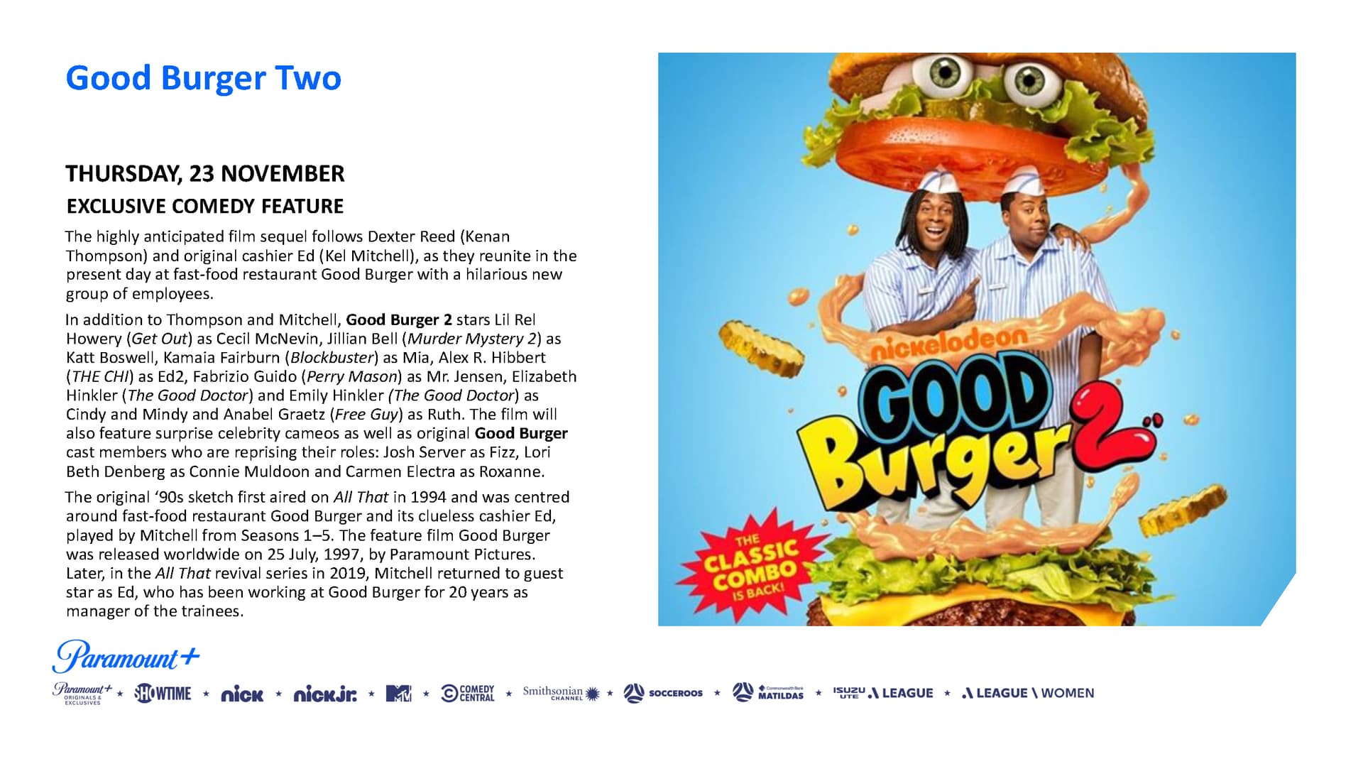 Good Burger 2, Streams Thursday, 23 November Exclusively on Paramount+.