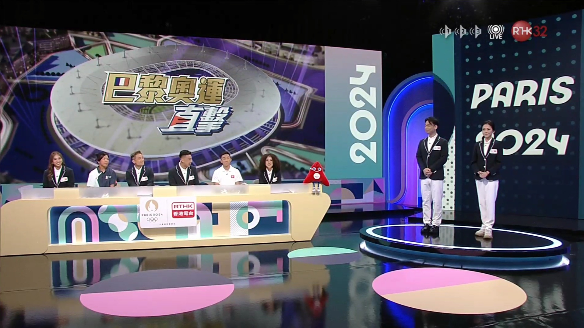 RTHK TV32 has a decent studio ‘specifically designed for the Olympics’. They’re also the only station that provides trilingual coverage (Putonghua in collaboration to CMG and at a standing part of the studio; also English).