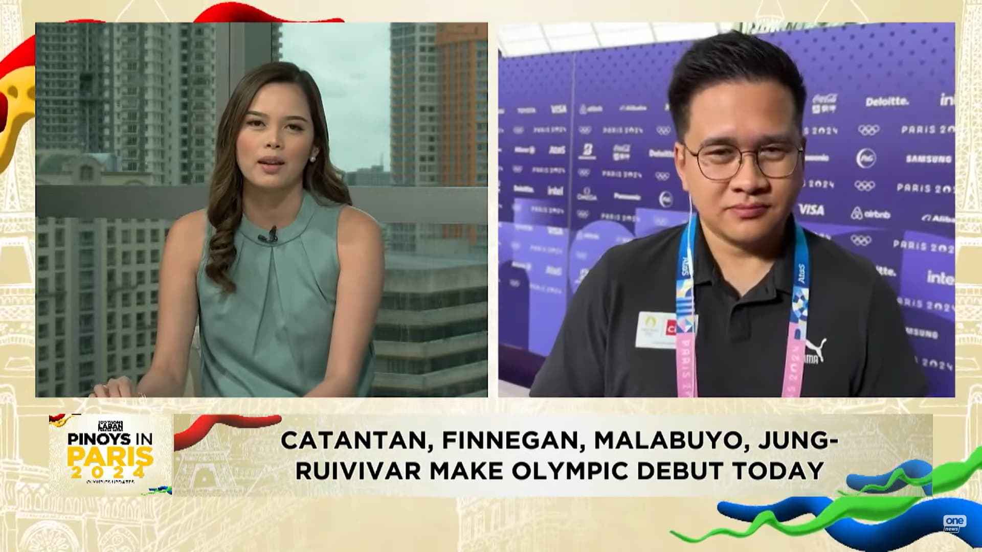 And updates from one of their “Paris Correspondents”, Carlo Pamintuan, aired on their news channel, One News (not to be mistaken with the NZ news org) (most of their correspondents are roaming across venues where Filipinos are playing)