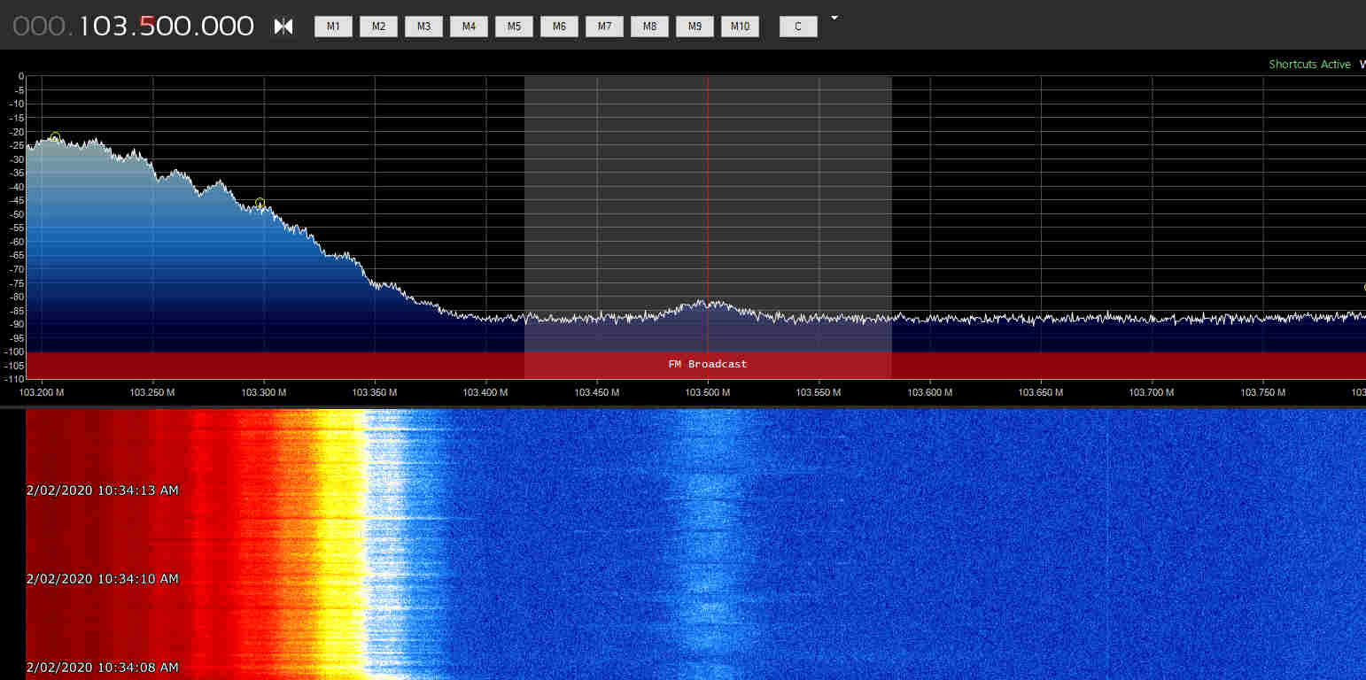 I’m just using my portables at the moment. Thanks for that spectrum grab. You can see a little bit of an RF spike on 103.5 though, if you look closely.