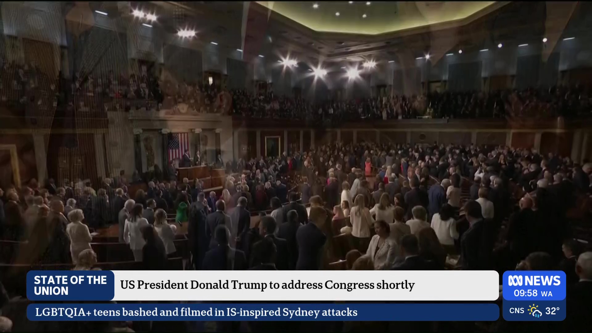 US President Donald Trump delivers the 2026 State of the Union address to a joint session of US Congress in Washington DC. The theme of the speech is “America at 250: Strong, Prosperous and Respected”.