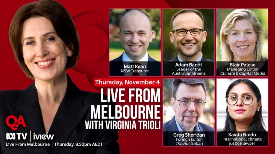 Virginia Trioli hosts Q+A live from Melbourne on Thursday, November 4 at 8.30pm AEST.