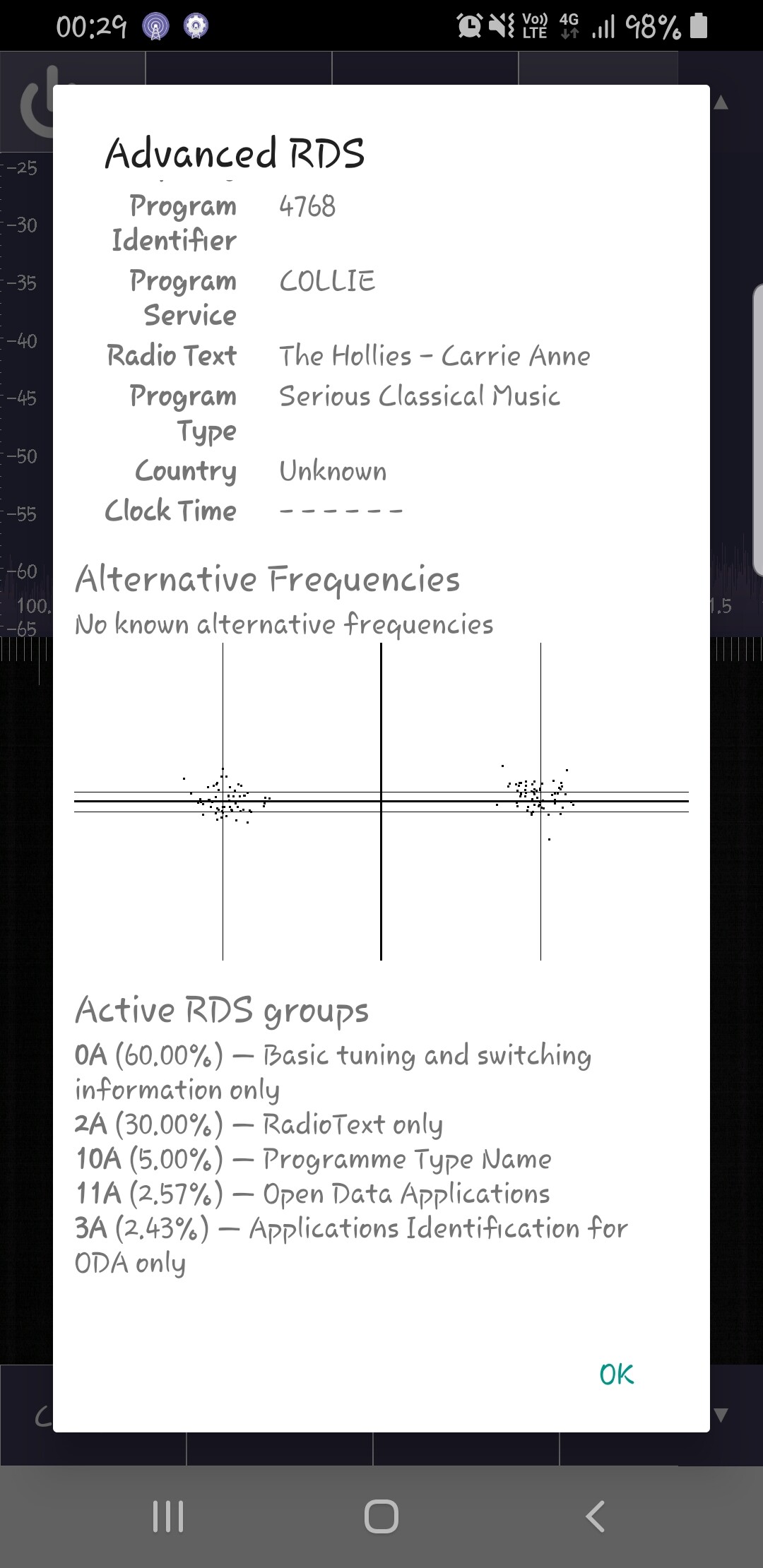 No Program Type or Radio Text. Just the PS Display saying “RDS PS”. Audio being a little choppy too at times.