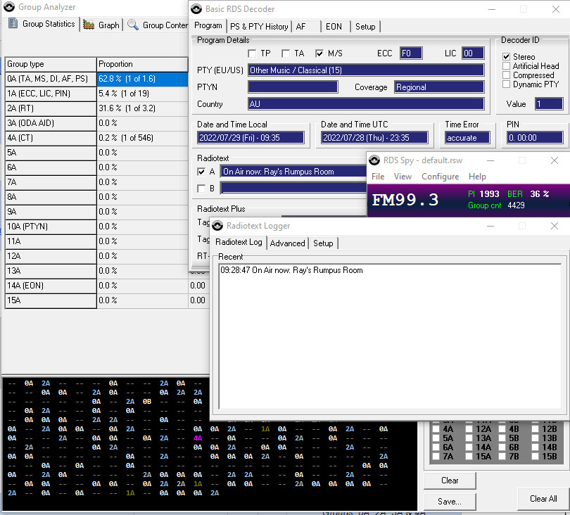 We’ve had discussion in the past of the very low level RDS on Triple J Sunshine Coast and how hard it is to decode even near the transmitter. But for some reason just managing to decode tonight from Brisbane.
