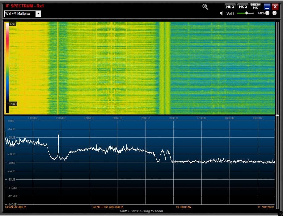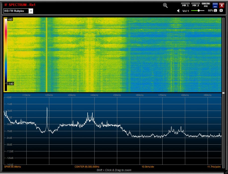 Modulation with the current house (Friday House Party) music is covering the tiny subcarrier most of the time, don’t think we’re going to get a silent break with the music atm to get a good look at it, but sure to say the RDS subcarrier is -75dB or lower & not readily recognisable (with the current music) but for sure it’s the lowest I’ve seen & a real effort to decode that under current conditions & music.