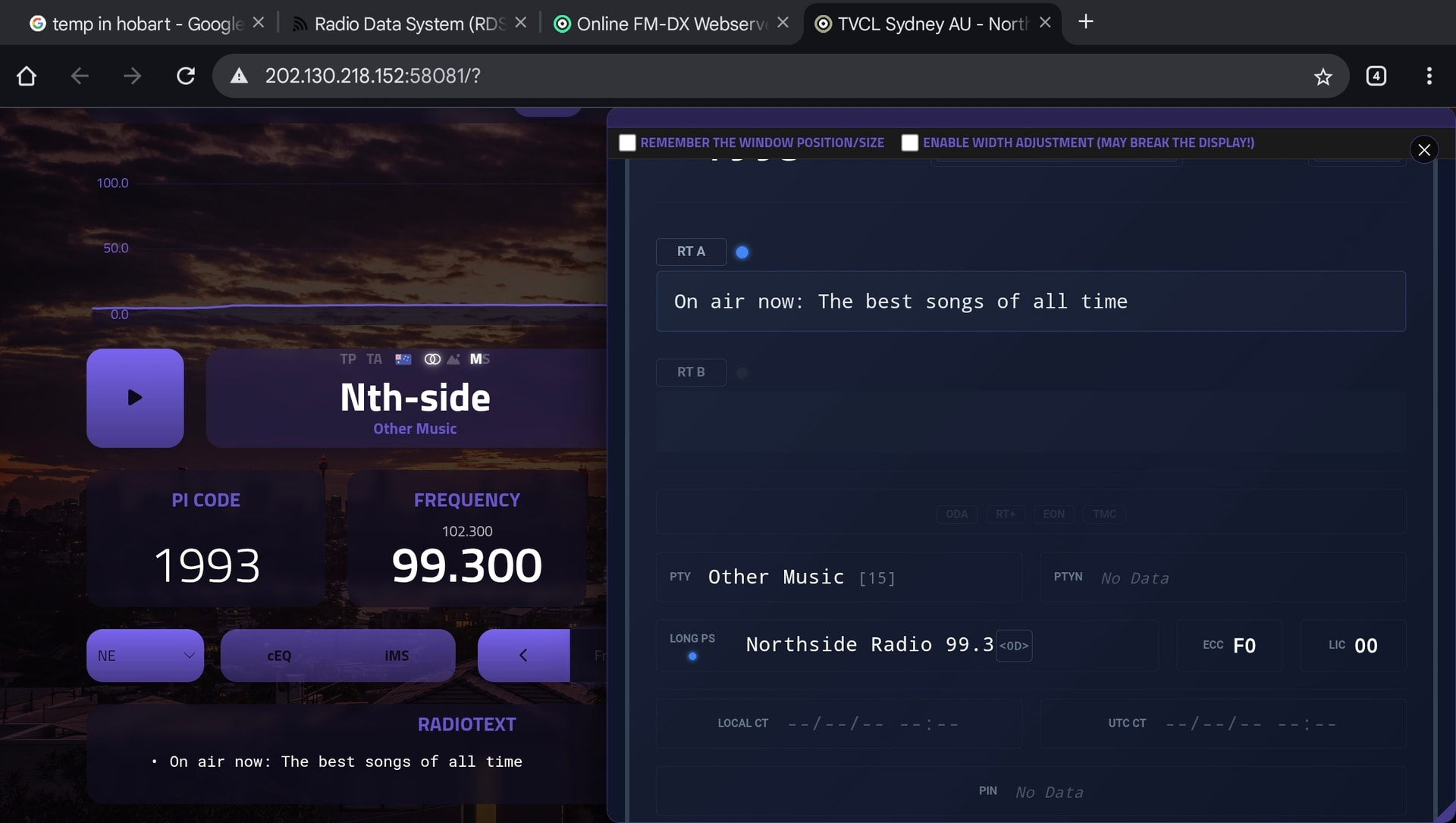 FM 92.9 Tamworth “Now Playing” RDS Text when taking the network feed ![]()