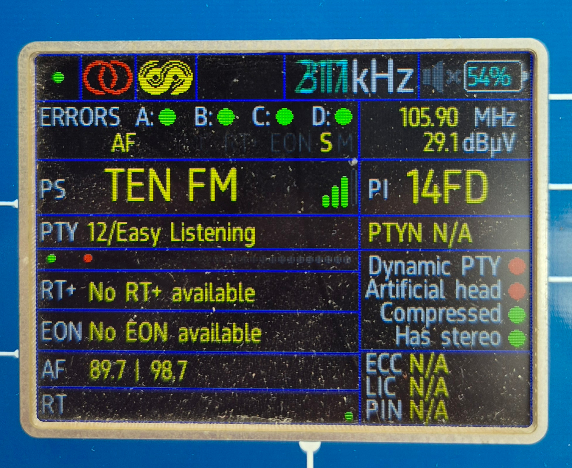Whilst in Stanthorpe for lunch today (on the way back home from the Gold Coast), this spur of 2TEN FM on 105.9 has two valid & correct AFs but the main 98.7 signal only has one RDS
