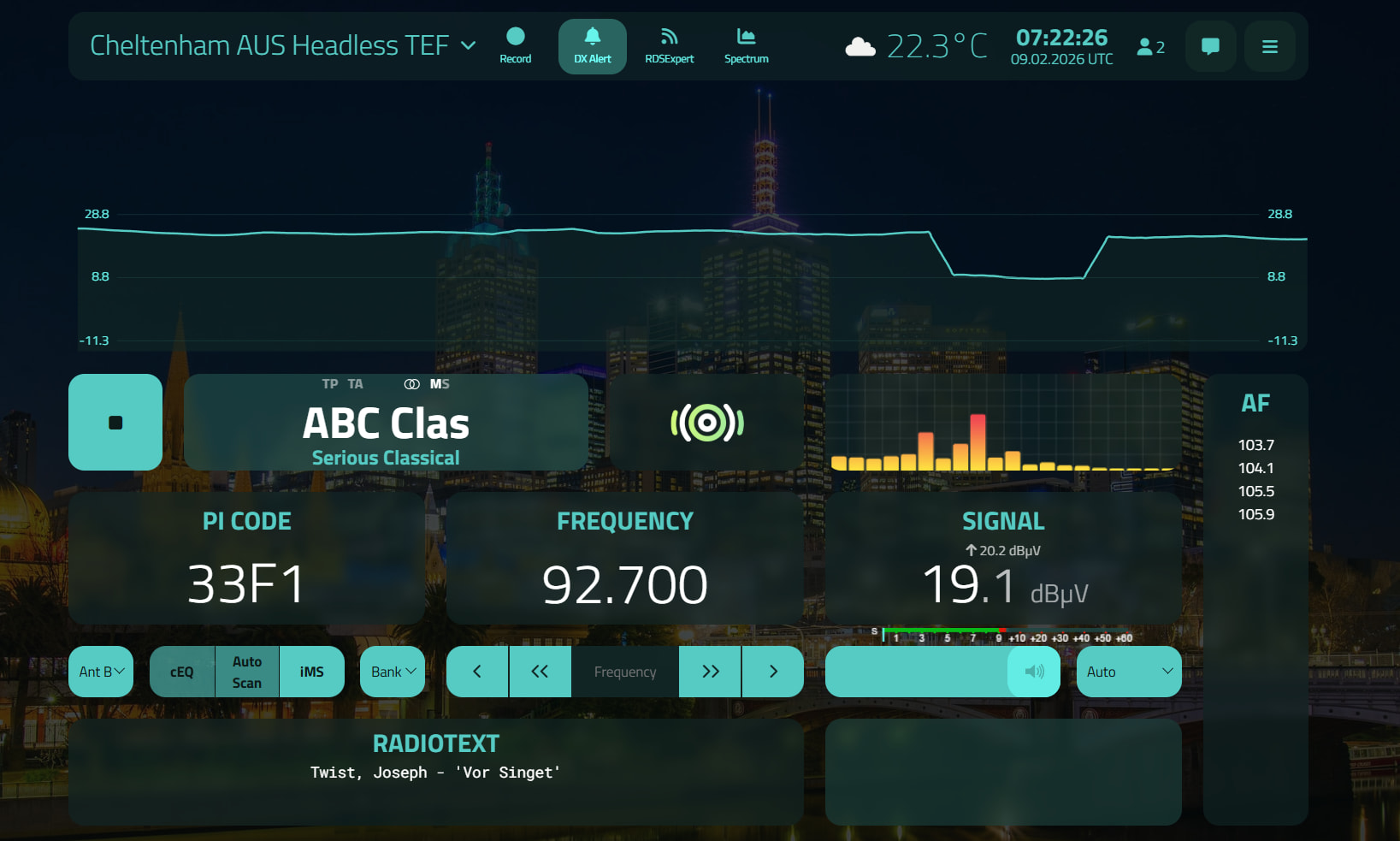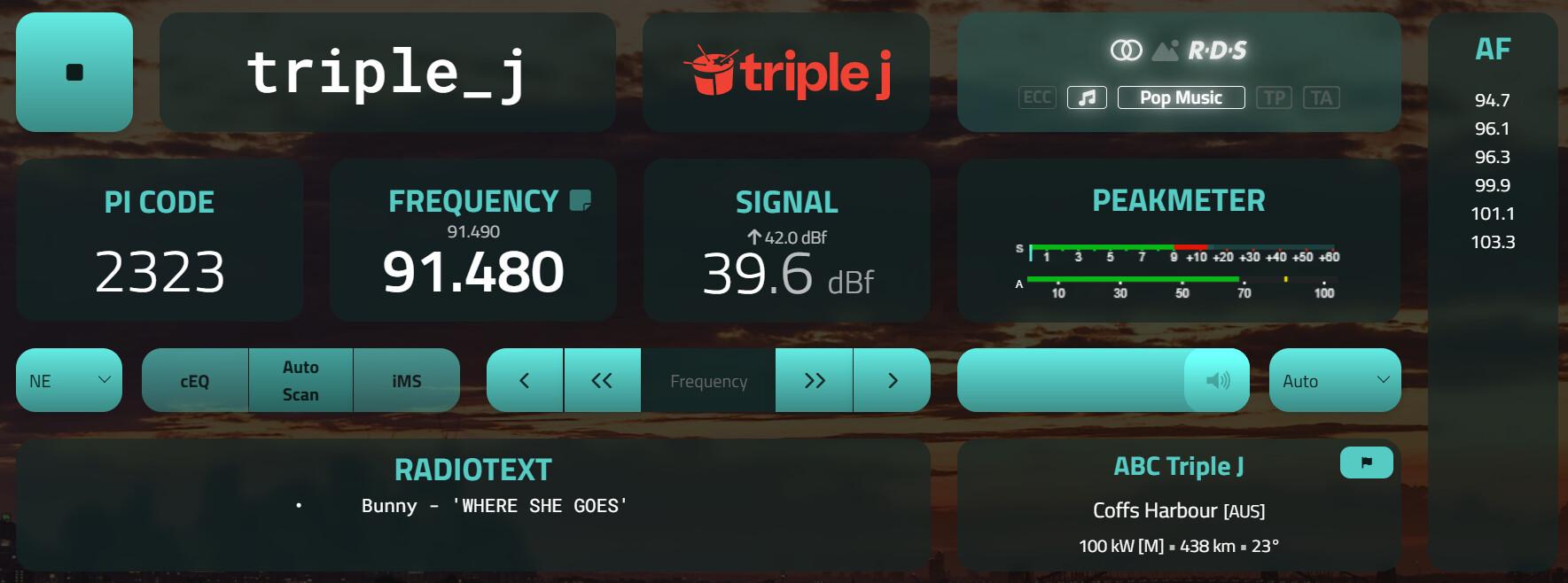 Sadly 96.3 JJJ here is blocked by Coast FM. I’ll try when I go out tomorrow.