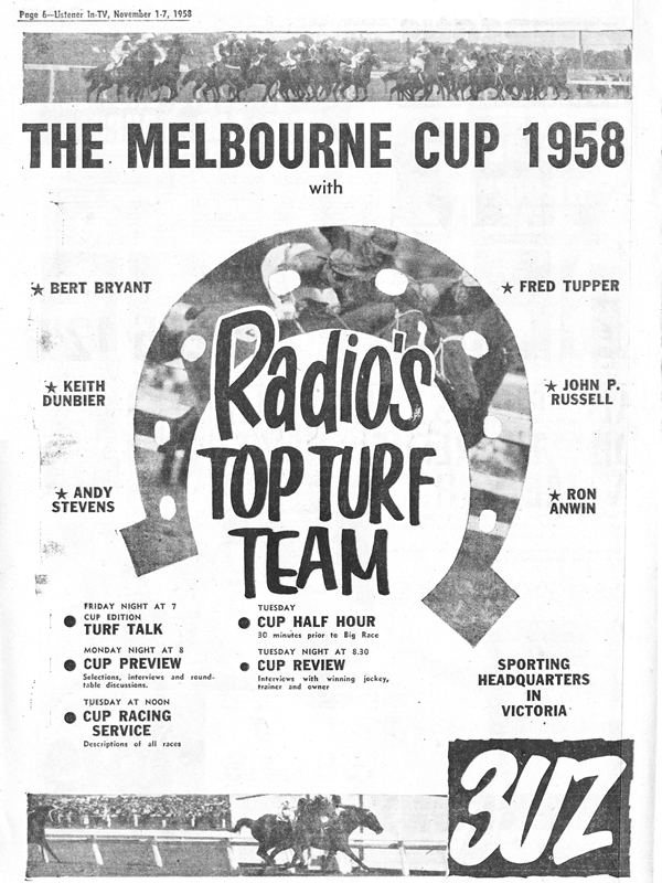 According to the program listing, the Melbourne Cup race itself was being covered by 3AR, 3UZ, 3DB and 3AW.