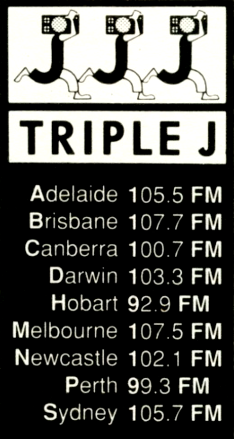 An interesting advertisement I found in The Age (6 July 1990) for a Paul Kelly concert sponsored by Triple J in Melbourne. The logo is what caught my eye: I can’t quite make it out but it appears to be three J’s running with a radio for a head? A precursor to the iconic drum logo… and including a local frequency, too.