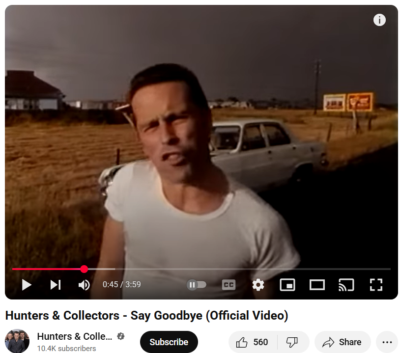 That billboard is in the background from a scene from Hunters and Collectorsâ 1986 video âSay Goodbyeâ