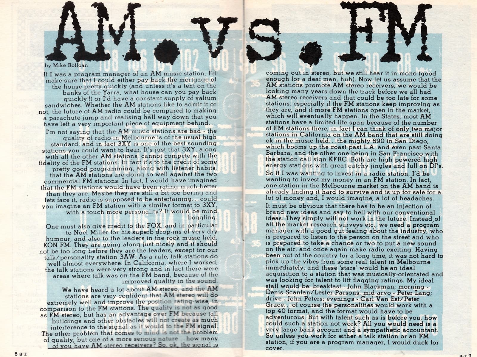 This is an article from another edition of said magazine, AM vs FM, from A-Z, 1 November 1984, just as AM was getting ready for Stereo.