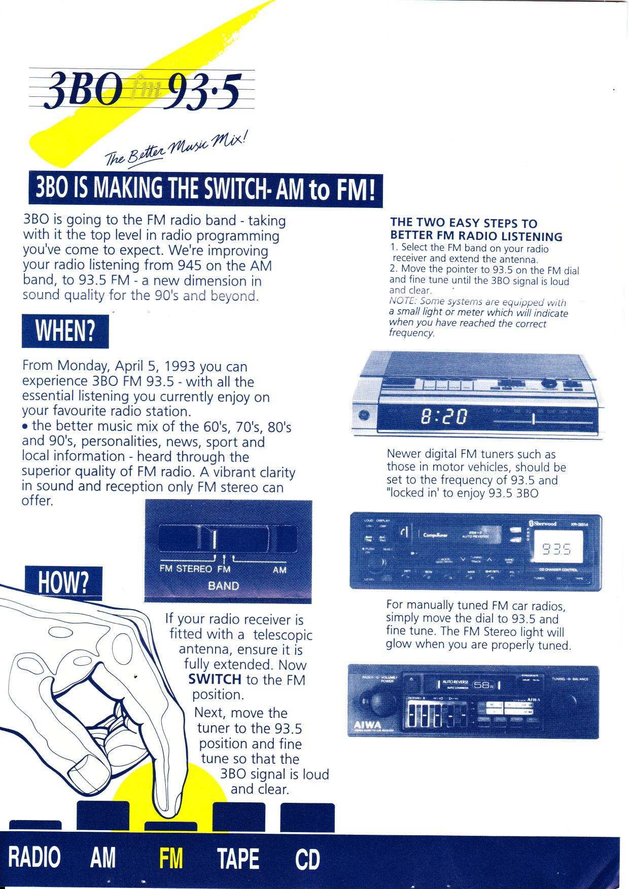 Random find from the archive today. Flyer promoting 3BO’s switch from 945 AM to 93.5 FM. (1993)