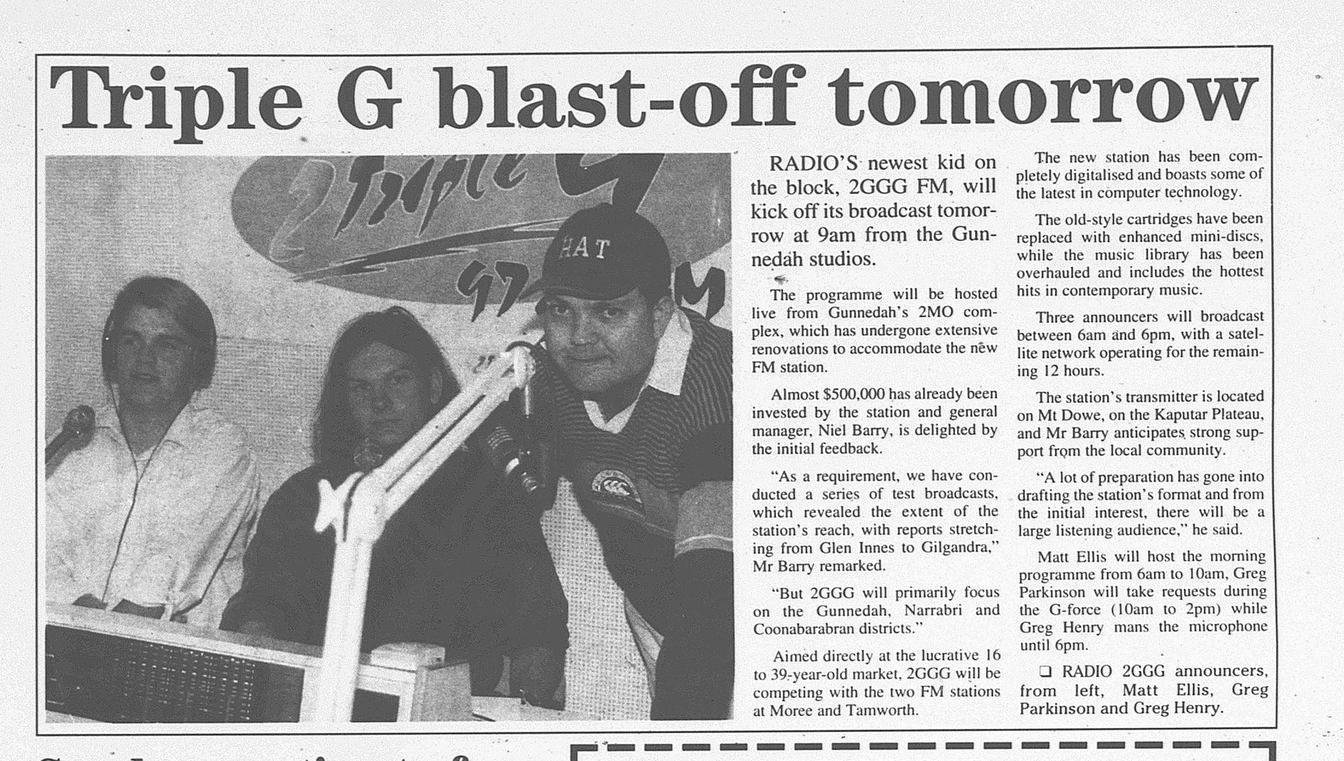 From Gunnedah’s “Namoi Valley Independent”, Triple G launching Wednesday 17 September 1997.