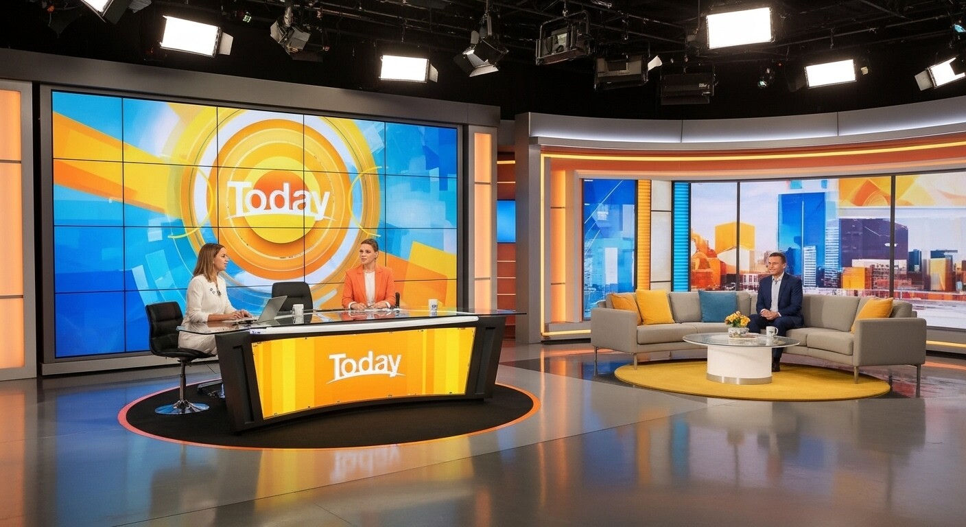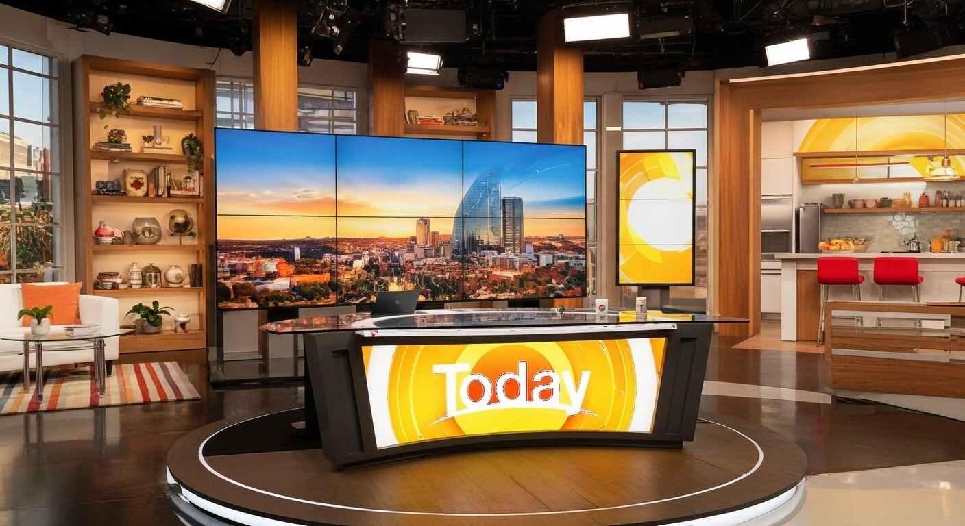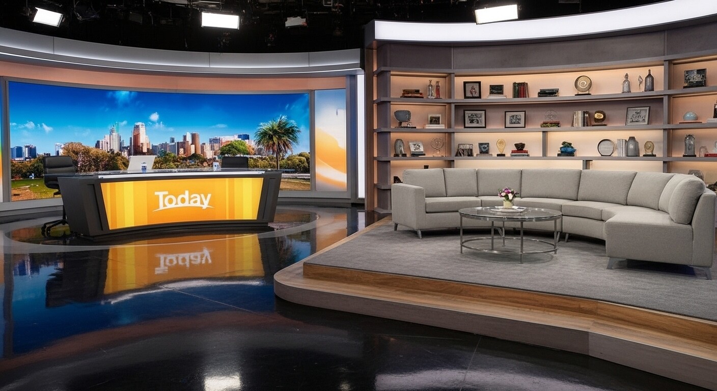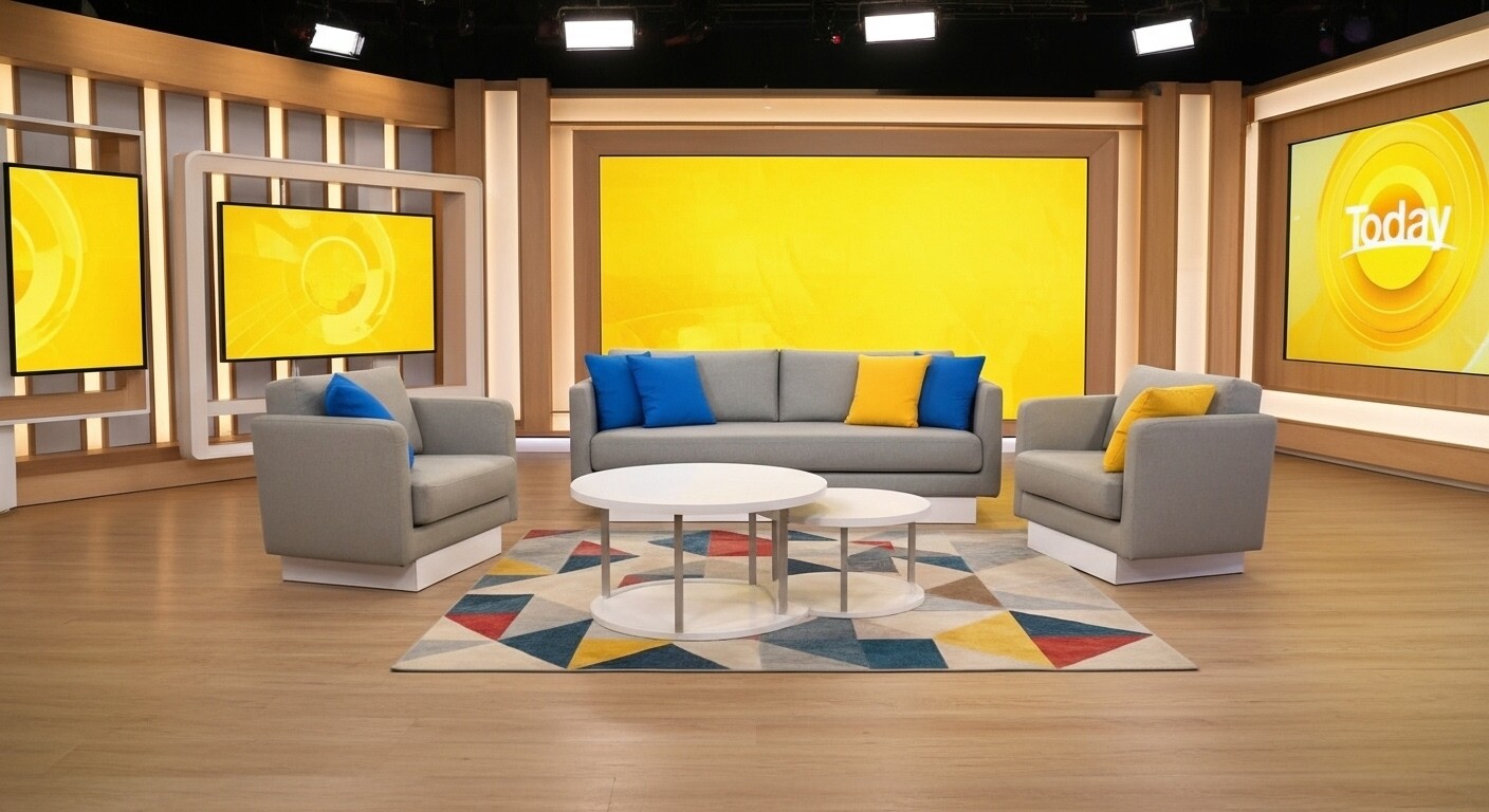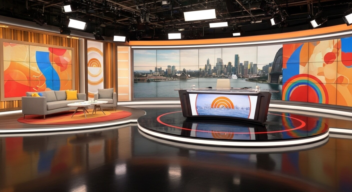 I know itâs a bit contentious on here with the use of AI, however, after some of the discussion recently about the Today show set being the weakest part of its look, I experimented with a few different set designs for both the soft set which looks odd with the pillar and the home base.