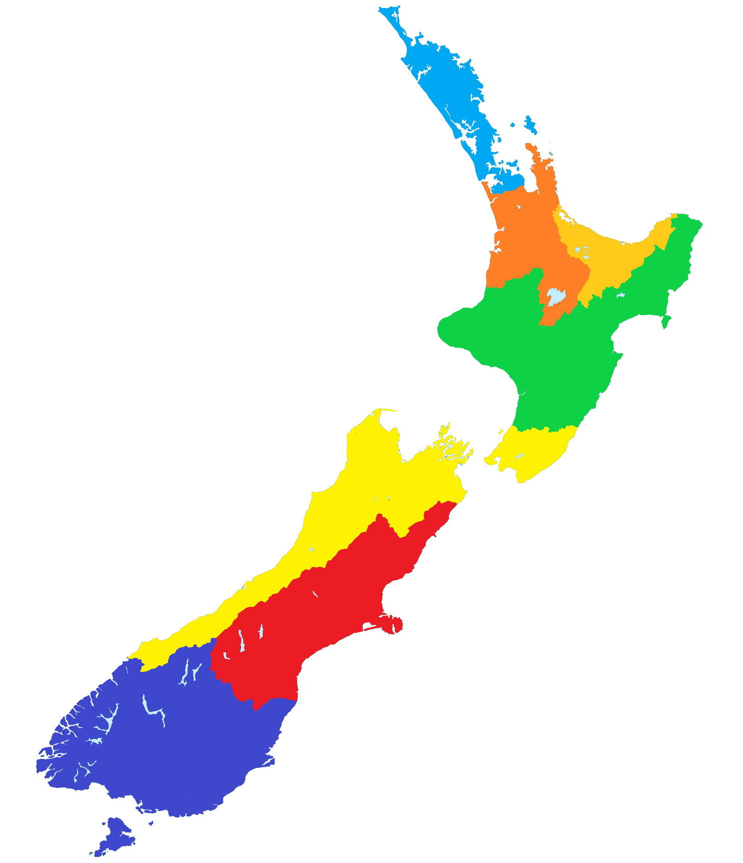 @theGradyConnell Here are the seven regional colour variations: Auckland is light blue, Waikato is orange, Bay of Plenty is gold, Palmerston North is green, Wellington is yellow, Christchurch is red and Dunedin is dark blue.