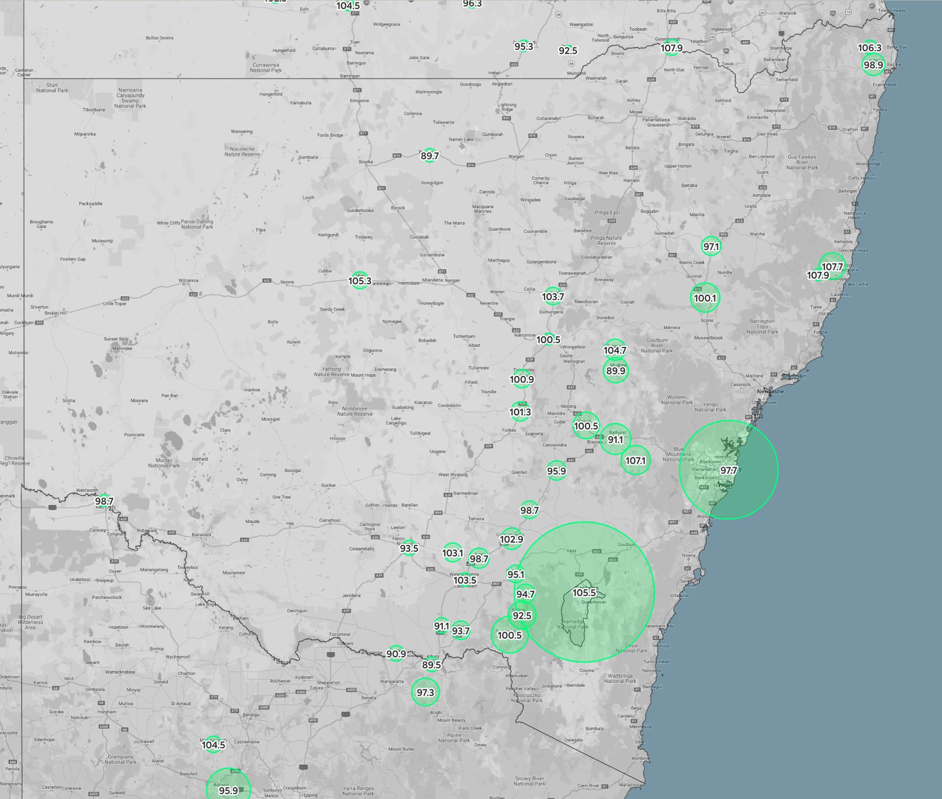 2RPH from Newcastle and Sydney are both on 100.5 MHz. Is there any reason why 2RPH from Wollongong on 93.3 can’t also go on 100.5 MHz as a SFN to resolve the co-channel issues with 93.3 from Gosford?