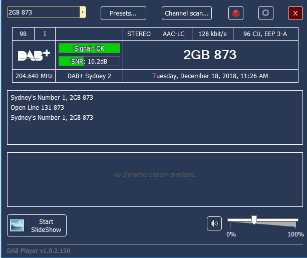Although being in a very good location for signals from Willoughby/Artarmon/Gore Hill probably helps things on my end, personally I find that having the TV antenna plugged into the USB tuner (even with the polarization differences) comes up with the best DAB+ signal results!