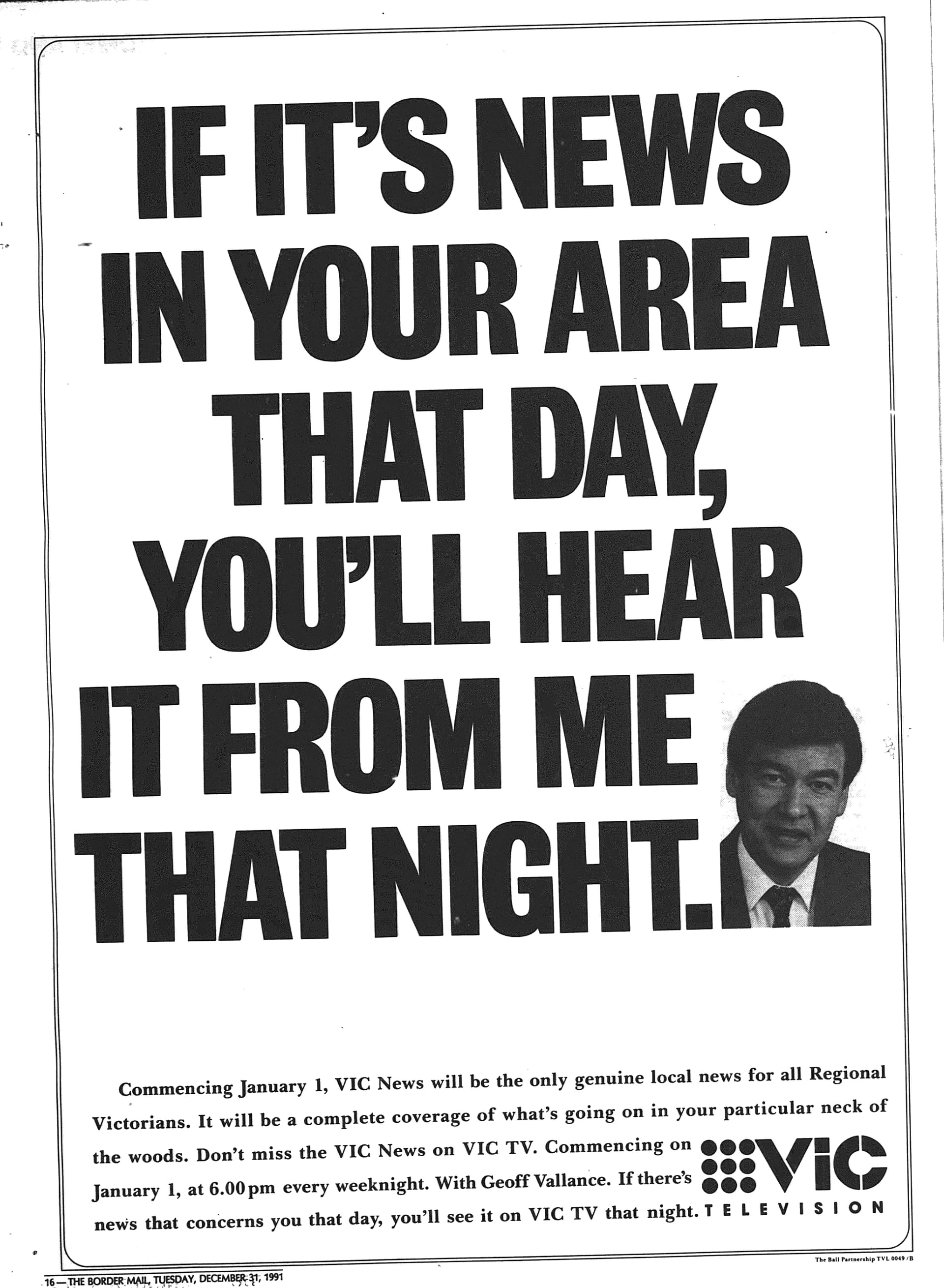 The Albury/Wodonga ‘Border Mail’ ran a very similar ad, but with Geoff Vallance as their presenter (another name I had not heard of)… not sure if he was Shepparton or Ballarat?