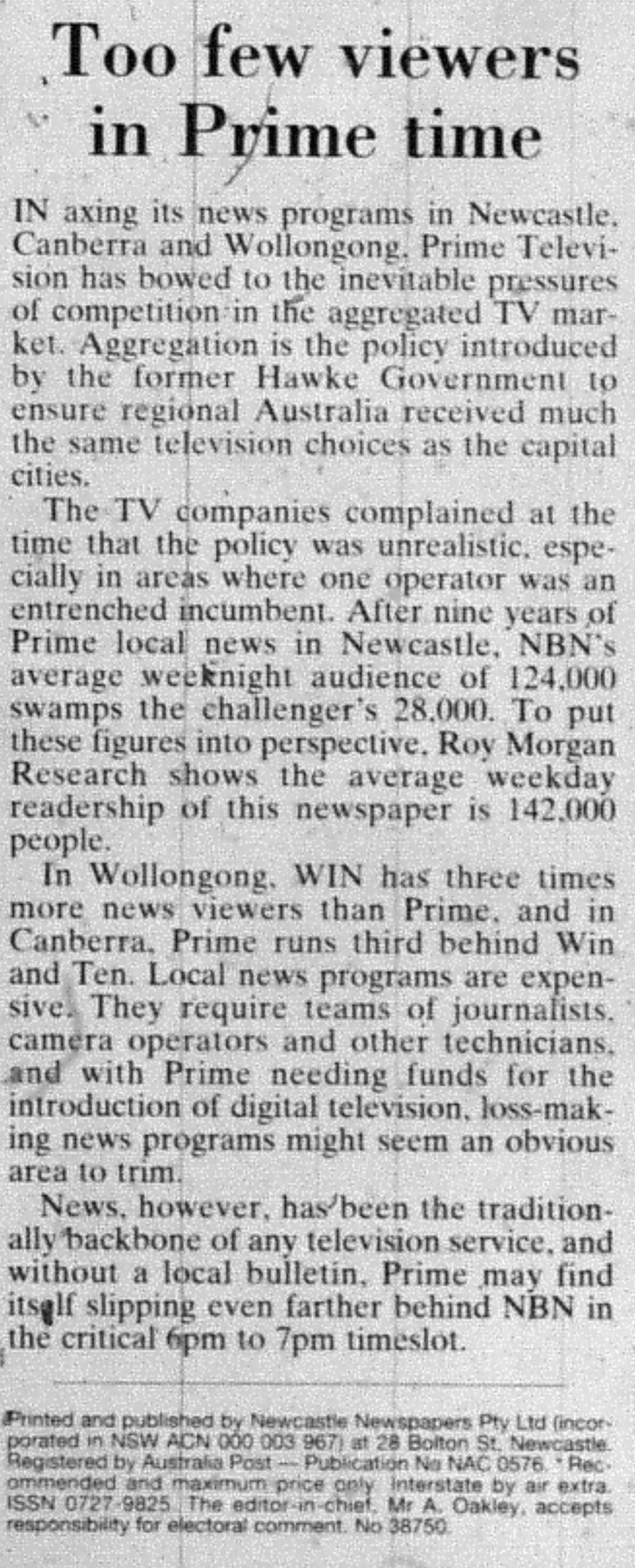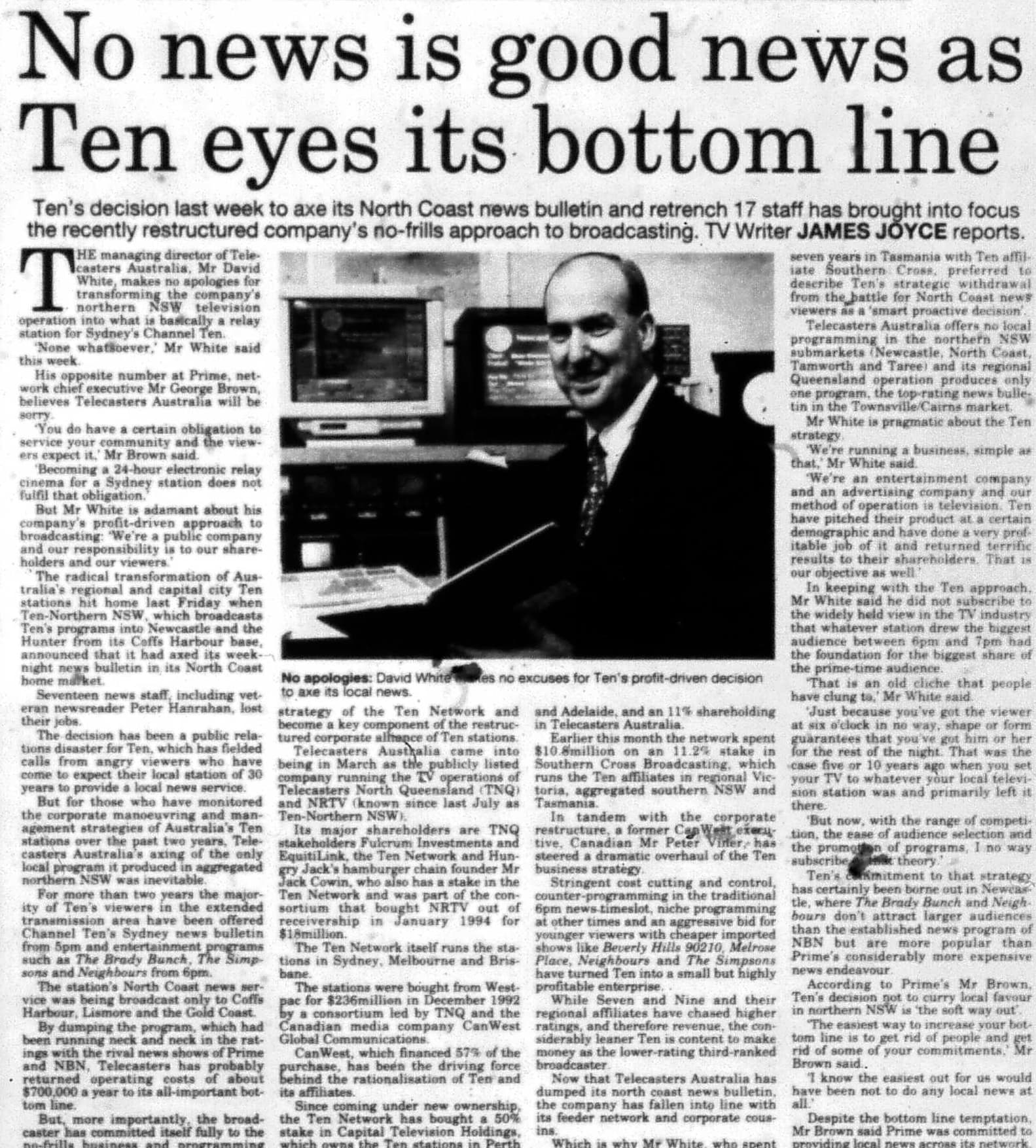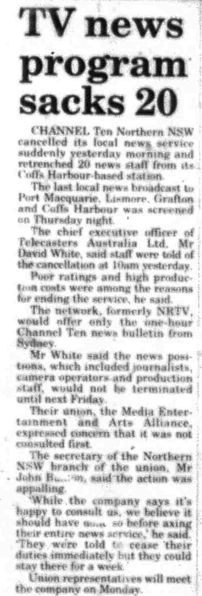 Even the axing of the Ten North Coast bulletin got some coverage in the ‘Newcastle Herald’ in May 1995.