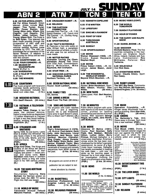 As i posted in the On This Day thread that today marked 40 Years since Live Aid and Oz For Africa. I was only 5 at the time so i have no memory of it. I have heard that ABC broadcast it but am curious about the broadcast.