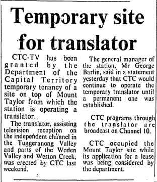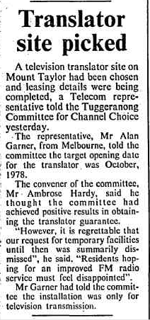 Possibly… BUT Brown Mountain and Mt Roberts (CTC Cooma) are 75 kms apart, so most folks in the area would have needed a different antenna for each.. so could possibly have worked?