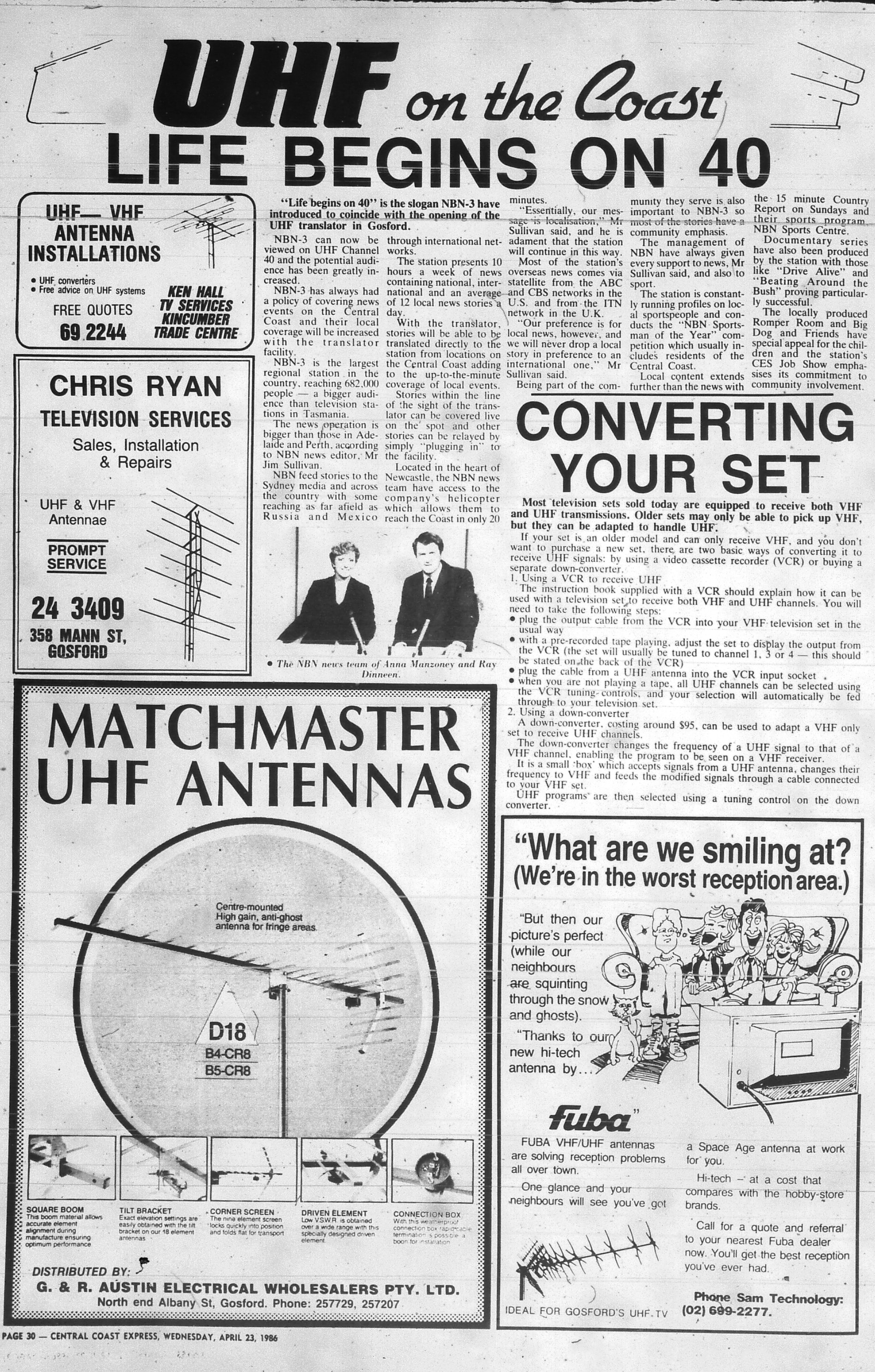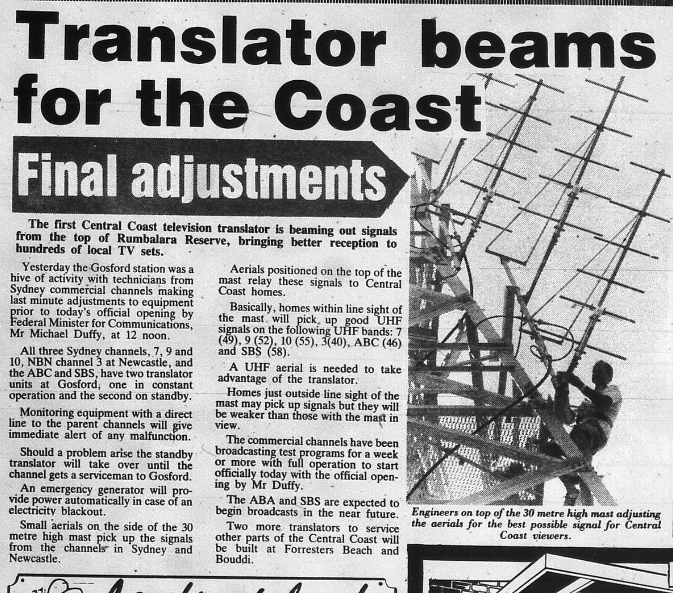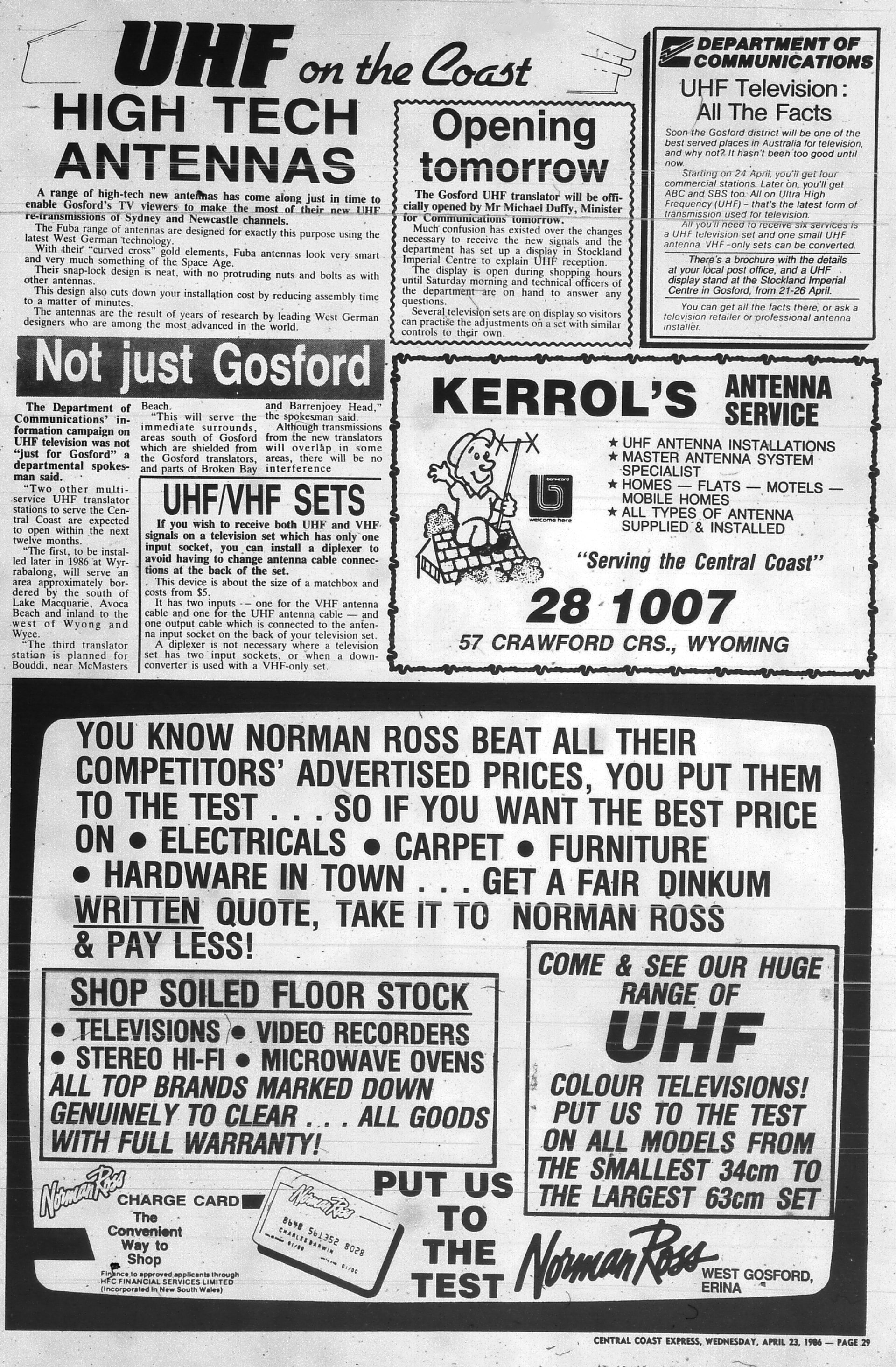 Gosford - first switched on 24 April 1986. Below from the ‘Central Coast Express Advocate’.