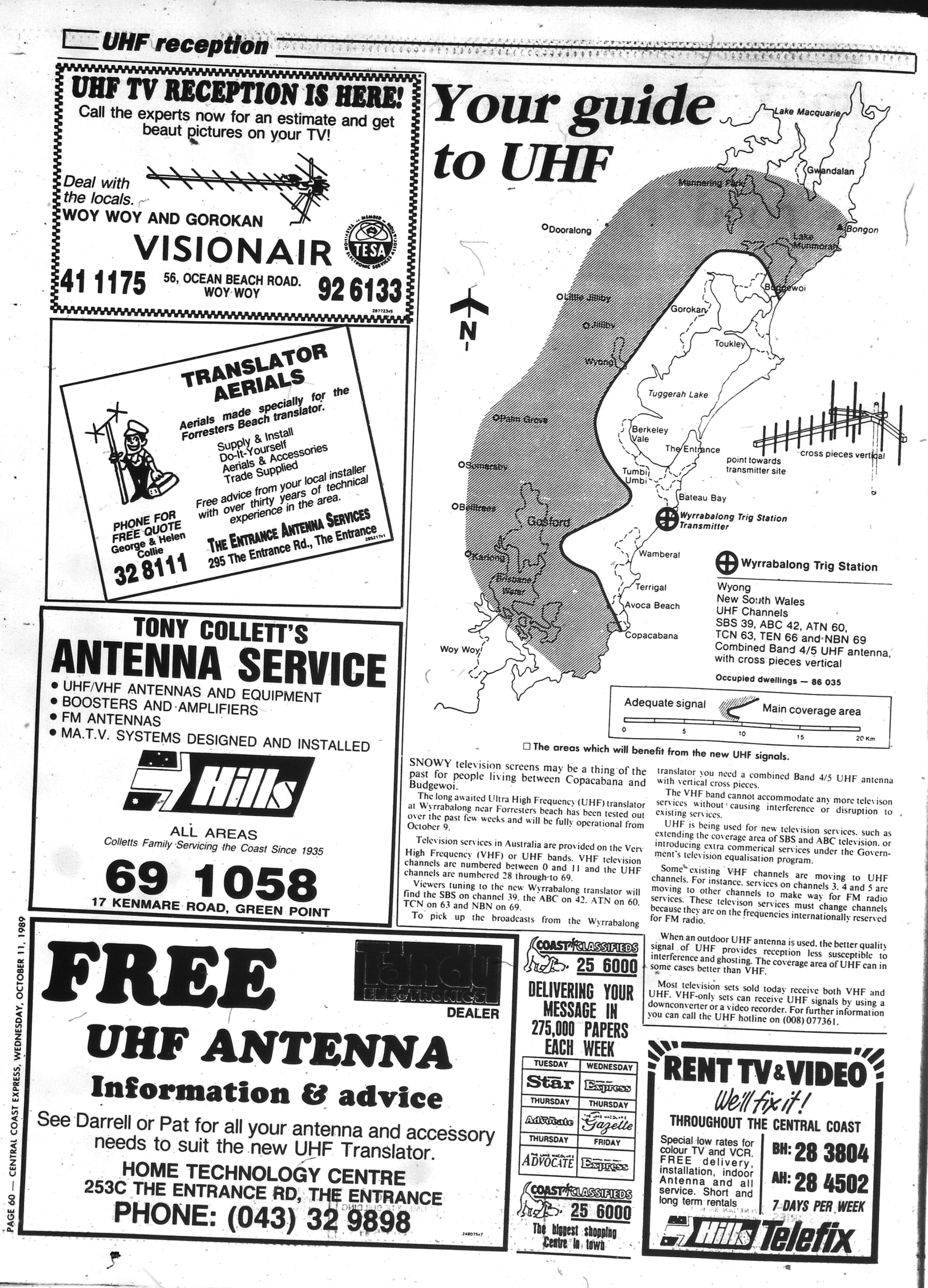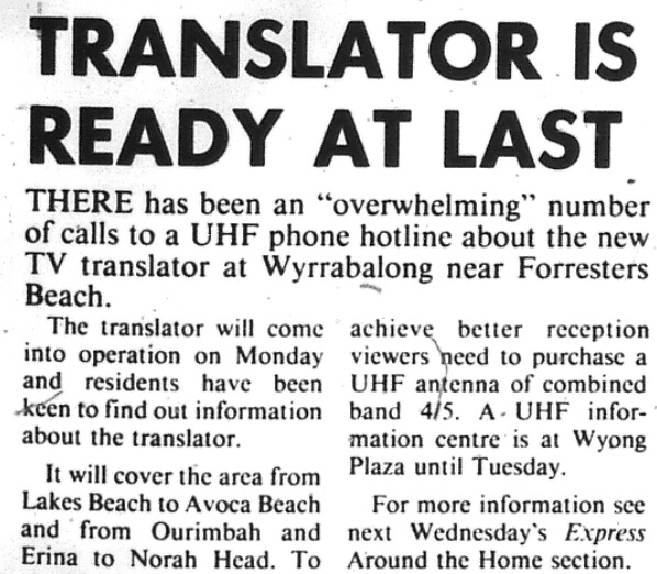 Central Coast analogue UHF relay switch on coverage.