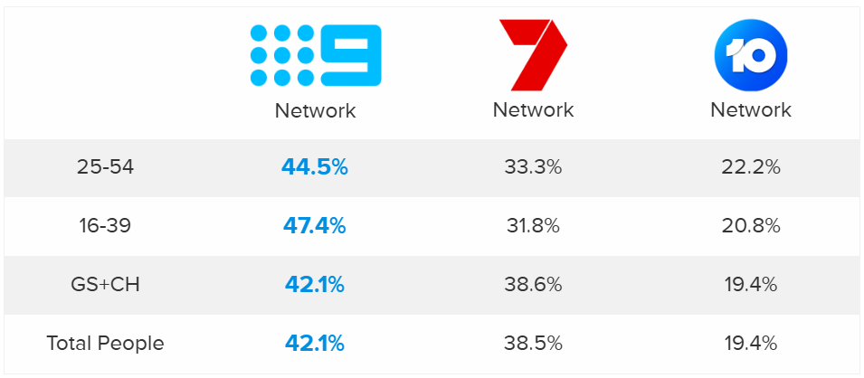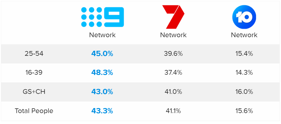 This success extends nationally, where the 9Network (incorporating both owned and affiliated stations) stands as the No. 1 network across the country, leading all key demographics. No. 1 network nationally,