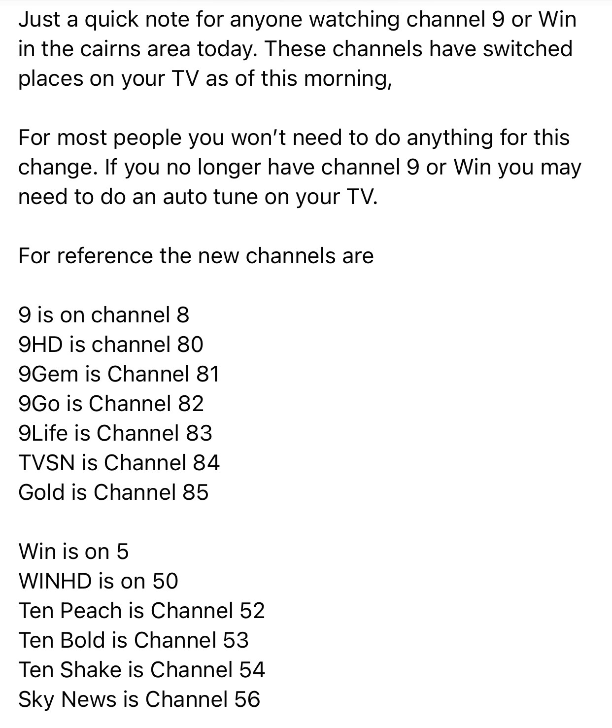 Almost feels like there are no affiliates with the removal of mappy for WIN , and the news update firstly not mentioning Southern Cross andnot being called SC10 on my tv when changing channels .