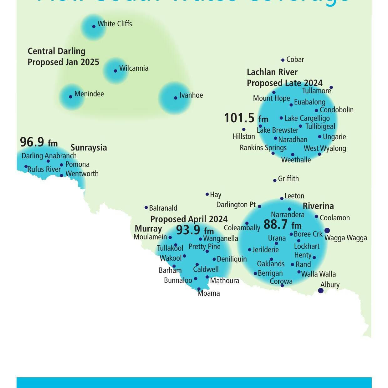 This adds to 88.7 coverage north of Berrigan to Jerilderie and 96.9 coverage at Wentworth in the Far South West.