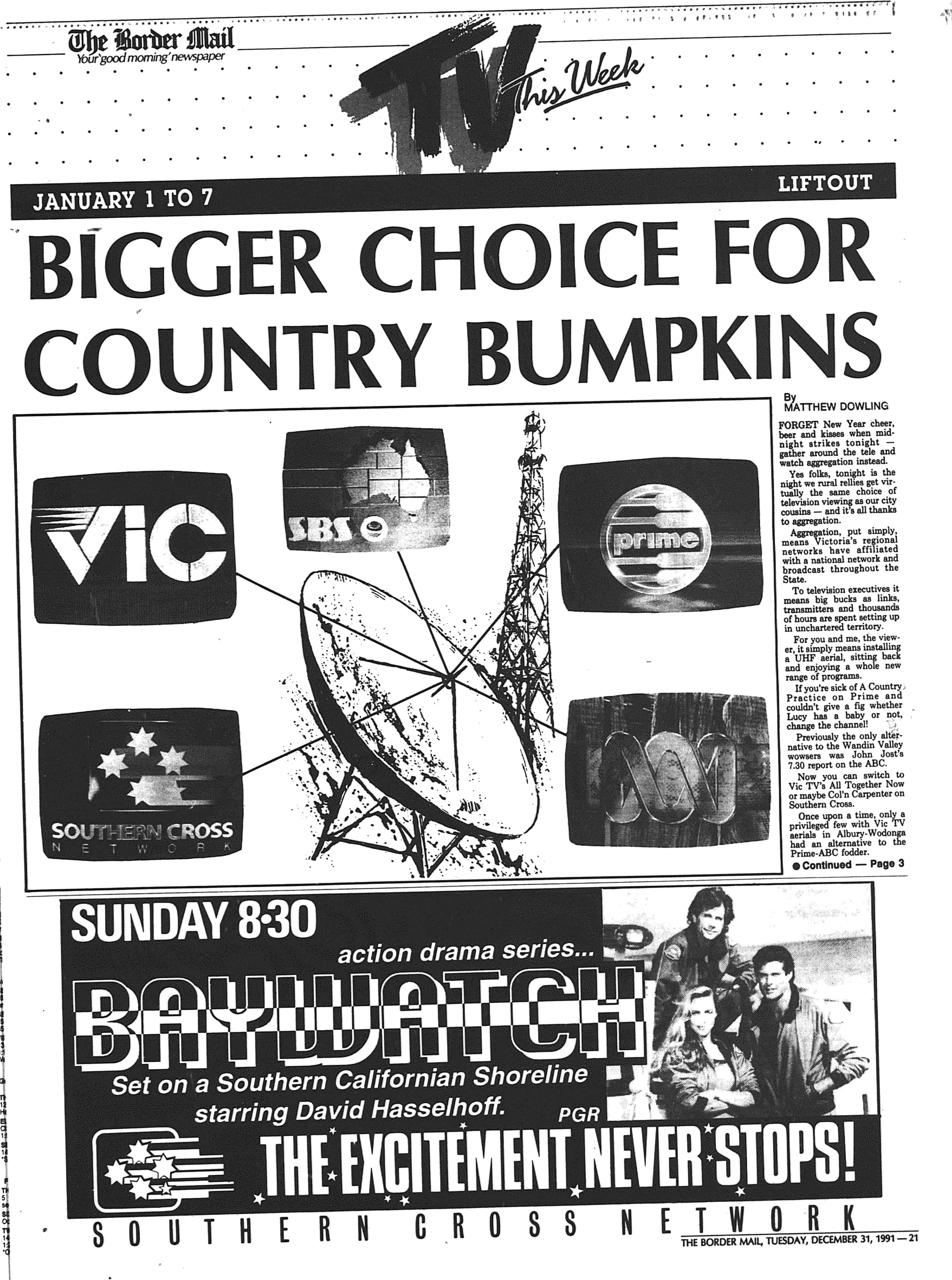 Albury/Wodonga was the only Victorian region to have all 3 commercial channels from 1.1.1992. Prime had delayed its launch across Victoria until late February/early March. I don’t think any official reason was given but I suspect Prime may have pushed for a delayed launch given that they were also launching in NNSW on 31.12.1991 and might have been a bit much to launch two aggregated markets only one day apart.