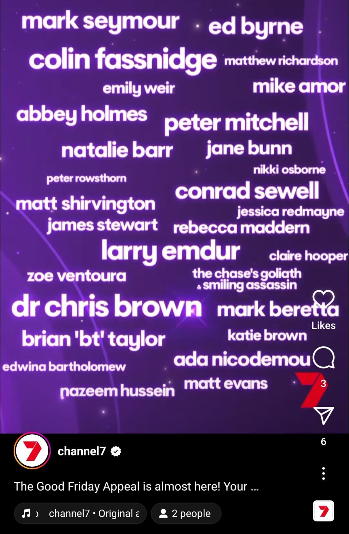 I think because Perthâs Telethon is completely different, running over days, vs the RCH GFA only a single day (not even), impacted now by the tied-in AFL telecast for it, obviously the ratings collapse over the years and subsequent budget cutting and reduced telecast. The fact they donât even move it to 7mate or something during the football says a lot. You wonder if they donât give it up just so Nine canât get their hands on it. Itâs definitely a shadow of its former self, the last year that looked like itâs still prime days and top effort was probably like 2013 or something.