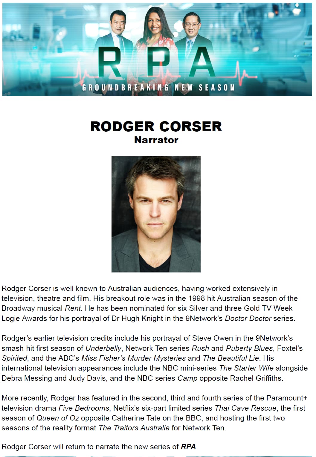Love Island Australia is also returning while RPA, Listing Melbourne and Budget Battlers are under consideration.