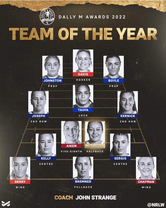 Sydney Roosters five-eighth Raecene McGregor won the 2022 NRLW Dally M Player of the Year.