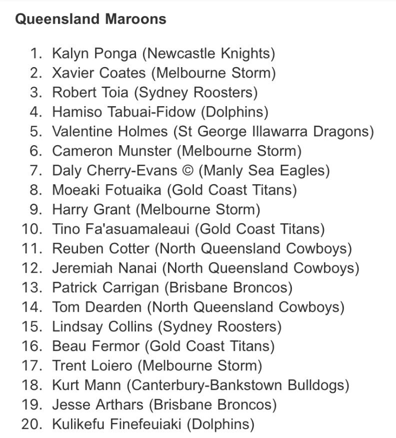 Toia, Fermor, Loiero to make Origin debuts. pic.twitter.com/XcFlBeDW3F