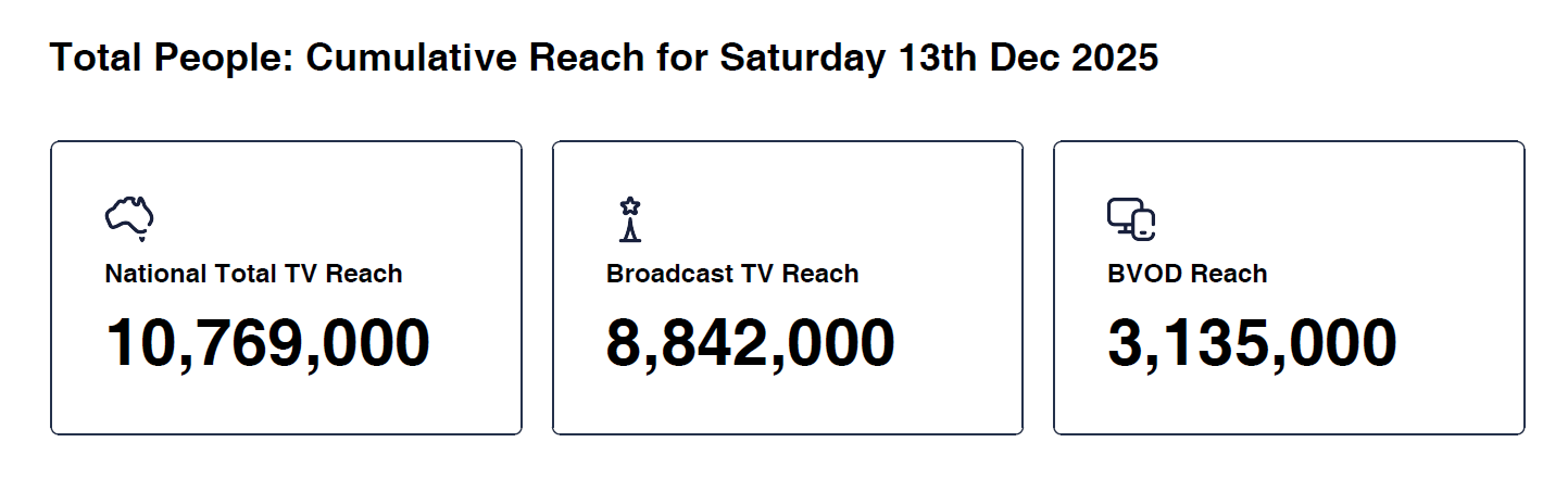 Data © OzTAM Pty Limited 2025. The Data may not be reproduced, published or communicated (electronically or in hard copy) in whole or in part, without the prior written consent of OzTAM.